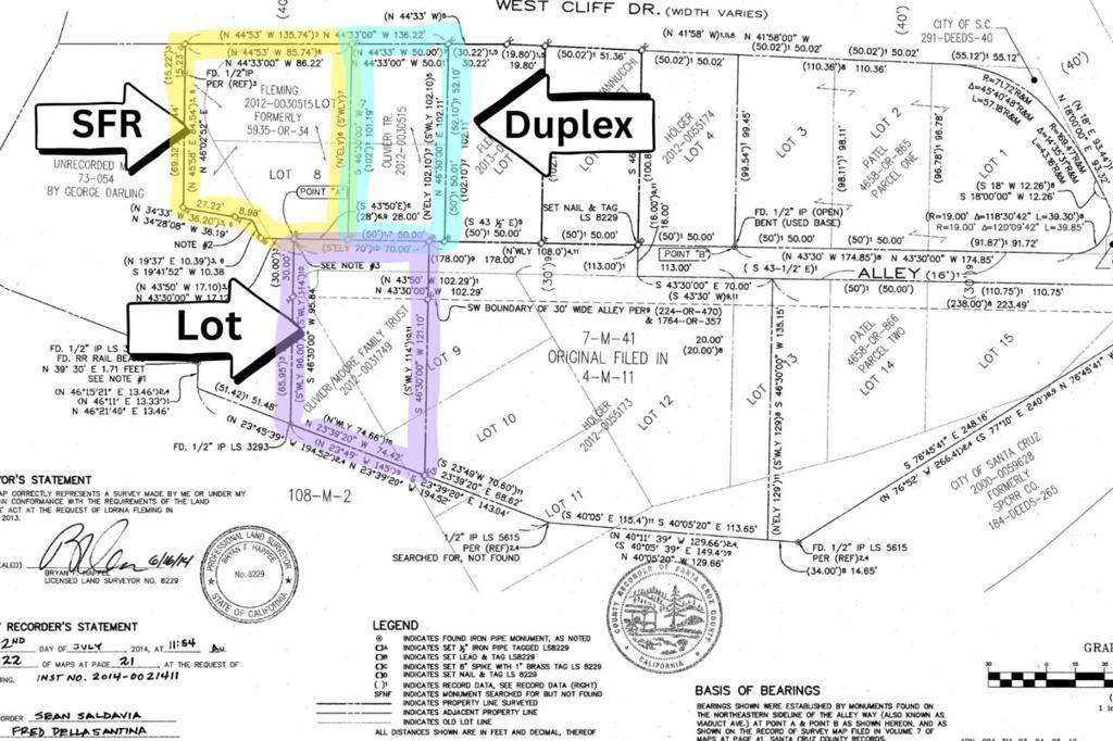 Rare investment and development opportunity near the beach in Santa Cruz. This offering includes 3 parcels, a single-family home, duplex, and adjacent vacant totaling over 20,000 SF. The properties feature ocean peek views from the front porches and sit in a private location at the end of Viaduct Ct off West Cliff Drive, directly across from Beach Hill and close to the Wharf, Boardwalk, and Downtown. This is a once-in-a-lifetime chance to assemble a large parcel in a prime beachside location. Upside and development potential for investors and builders looking to create something special in Santa Cruz.
