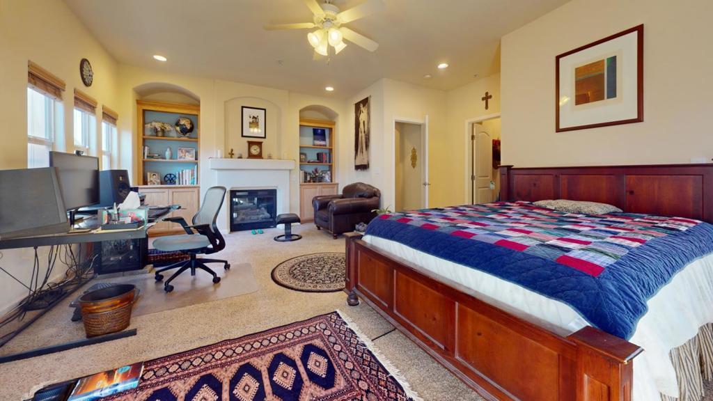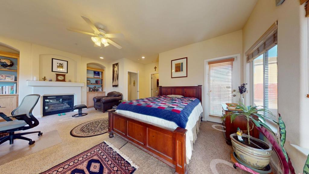 Reduced 17K, Since listed Open 1-5 Sat Nov 1 Bring offers, Move in ready, Dream home, only active listing in this highly sought after desirable neighborhood Huge TV & furnishings available separately. Primary bedroom oversized includes sitting/library area 2nd fireplace. Soaking tub with shower over, Views to the garden courtyard are private and relaxing. Single level 3-bed, 2-bath home, 1574 sqft, offers a super floor plan soaring ceilings, spacious living areas, comfort & style. Home is filled with natural light, large windows throughout. a large living room & 2nd fireplace. The 2nd bedroom off LR serves as a perfect library/office or study as well, as a bedroom. The 3rd bedroom currently serves as a workout room, Second bath tub over shower. The timeless kitchen includes like new oak cabinetry, a large corner pantry, tile countertops, Like new large double white sink dishwasher and microwave. A center island for easy entertaining to the dining area making it the perfect kitchen. Opening to backyard courtyard. A spacious backyard and attached fully finished double garage Underground utilities, sidewalks, family, friendly safe neighborhood short walk to schools & parks Buyer is advised to independently verify the accuracy of all information & with appropriate professionals