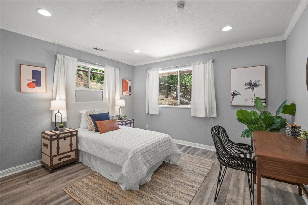 This single-story Boulder Creek home is designed for easy living, entertaining, and relaxing. Nestled on a half-acre lot with forest and mountaintop views, it offers the perfect balance of privacy, convenience, and a retreat-like feel. Inside, youll enjoy a thoughtfully remodeled layout with 4 spacious bedrooms (plus a versatile bonus space) and 3 full bathsall on one level. Large windows, abundant natural light, and a cozy fireplace create a warm, inviting atmosphere. The primary suite features a walk-in closet, while the attached garage offers a private bonus roomideal for a home office, art studio, or music roomgiving you flexibility to fit your lifestyle. Step outside to your private oasis: multiple patios for outdoor dining & lounging, space for gardening, while soaking up the quiet mountain air. And the best part? Youll feel worlds away yet be just 2 minutes from downtown Boulder Creek, 40 minutes from Silicon Valley, and 25 minutes from the beaches of Santa Cruz.