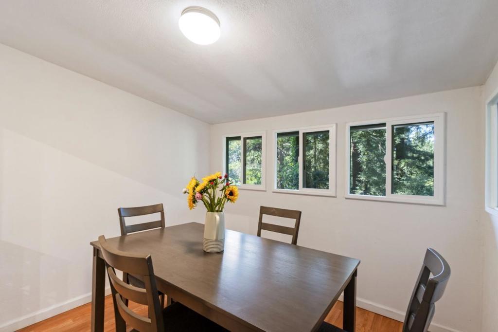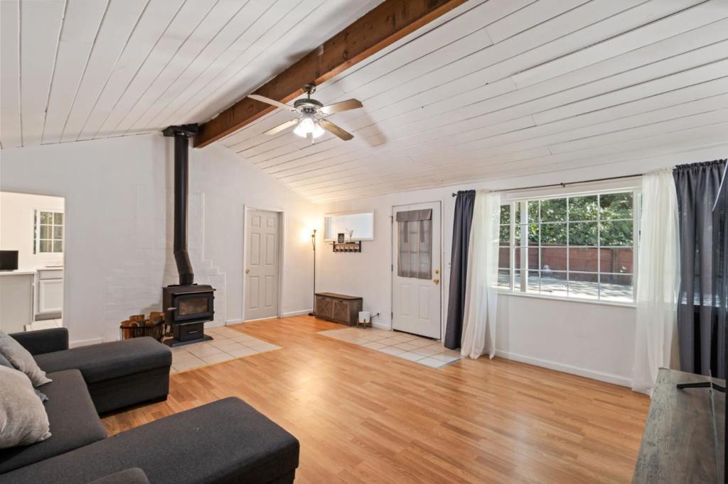 Discover the charm of Boulder Creek living in this 2-bedroom, 1-bathroom home offering 1,108 sq ft of space on a 3,790 sq ft lot. With thoughtful details throughout, it blends rustic character with modern convenience. Enjoy vaulted and open beam ceilings that add volume and style. The kitchen features solid surface Corian countertops, electric oven range, dishwasher, and refrigerator, functional and attractive. Laminate and tile flooring create a smooth flow, while a wood stove, wall furnace, and fireplace keep the space warm and inviting. A laundry area with washer/dryer hookups adds convenience. A bonus basement provides valuable additional space perfect for storage, projects, or a home office. Other features include energy-efficient appliances, double-pane windows, and an outdoor shed. Located in the San Lorenzo Valley Unified School District, with easy access to local resources. This home offers peaceful surroundings, flexible space, and modern comfort, come experience Boulder Creek.