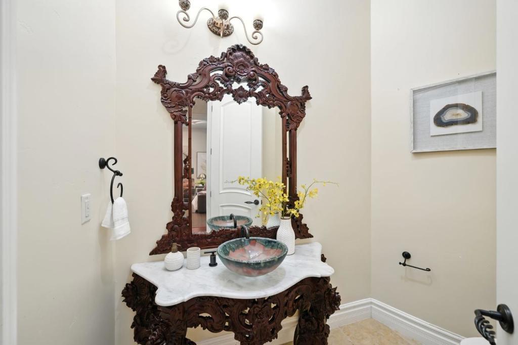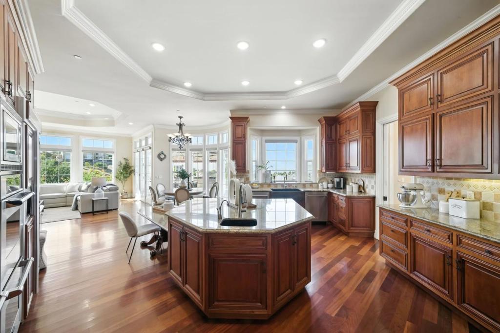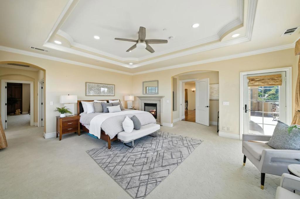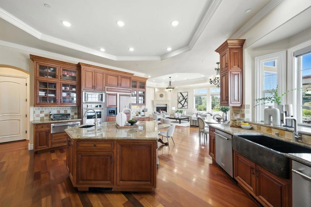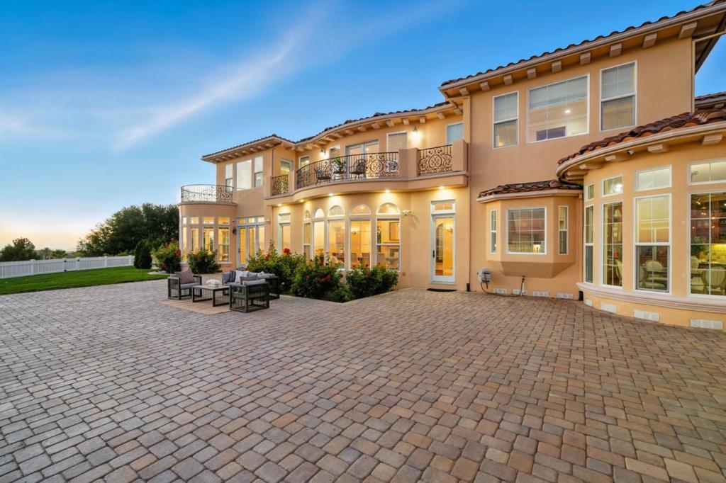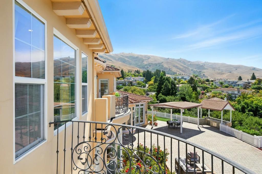 Extraordinary Mediterranean Revival estate in coveted Mission Hills, this 8,132 sq.ft. Tuscan-inspired residence sits on 2.7 acres with its own Cabernet vineyard, offering refined living, enduring legacy, and sweeping 360 Degree views of the Bay Area. With symmetry, arched entryways, and a red-tile roofline, this home is a statement of prestige and a timeless retreat. The gated approach leads to a grand foyer with marble floors and dual staircase. Seven bedrooms, six full baths, and two powder rooms are complemented by a theatre, exercise room, executive office/library, and a discreet staircase to the master suite. Formal celebrations span the dining with custom fireplace extending to the backyard with sweeping views, adjacent to a living room alcove perfect for a grand piano. The chef kitchen features cherrywood cabinets, granite island, rare granite sink, and Thermador appliances. Family room offers great views, a grand fireplace, wet bar and wine cellar. The primary suite boasts dual balconies, a spa bath with Jacuzzi, marble vanities, steam shower, sauna, and expansive walk-in. Manicured grounds, vineyard rows, and panoramic views of city lights, Bay bridges, and Mission Hills complete this rare estate blending architectural distinction, privacy, and generational value.