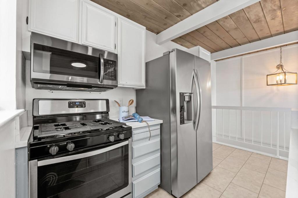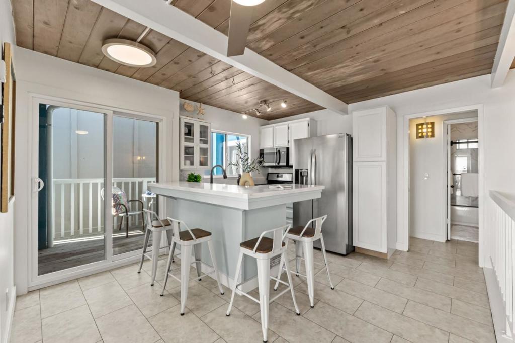 Welcome to this refined mid-century beach house with a modern touch, just steps from the sand, surf, and charm of Rio Del Mar Village. Designed with a reverse floor plan, the upstairs showcases open living and dining areas framed by walls of glass that fill the home with natural light and sweeping ocean views. A private bedroom suite on this level opens to two decks, one rooftop deck and the other adjacent, offering the perfect place to relax in the coastal breeze. Downstairs, two additional bedrooms share a full bath and comfortable entryway that creates flexible options for guests, extended family, or rental potential. Recent upgrades include a brand-new roof, new sliding doors, remodeled kitchen and baths, updated flooring, a tankless water heater, and a 200-amp electrical panel ready for an EV charger. With classic beachy style, thoughtful updates, and close proximity to beloved Rio Del Mar restaurants and the beach, this property presents a rare opportunity to own a coastal retreat. Aptos is truly one of California's most desirable seaside neighborhoods, tucked away for relaxation, views and comfort. Pacific ocean views from your primary suite, dining, living, kitchen and balconies. Your beach home awaits!