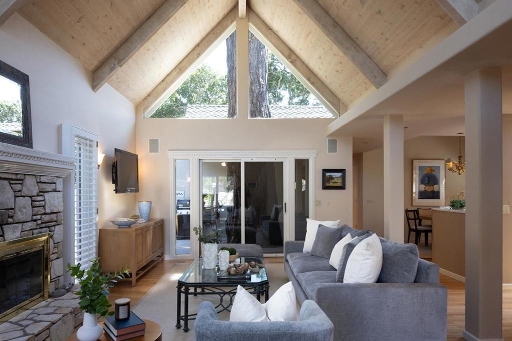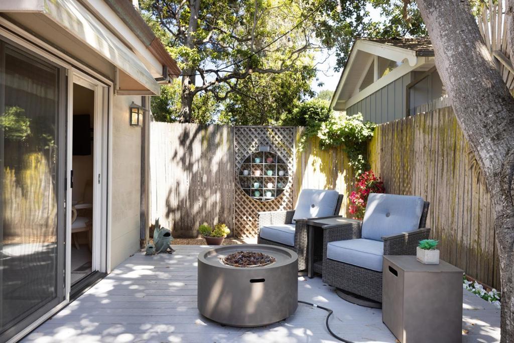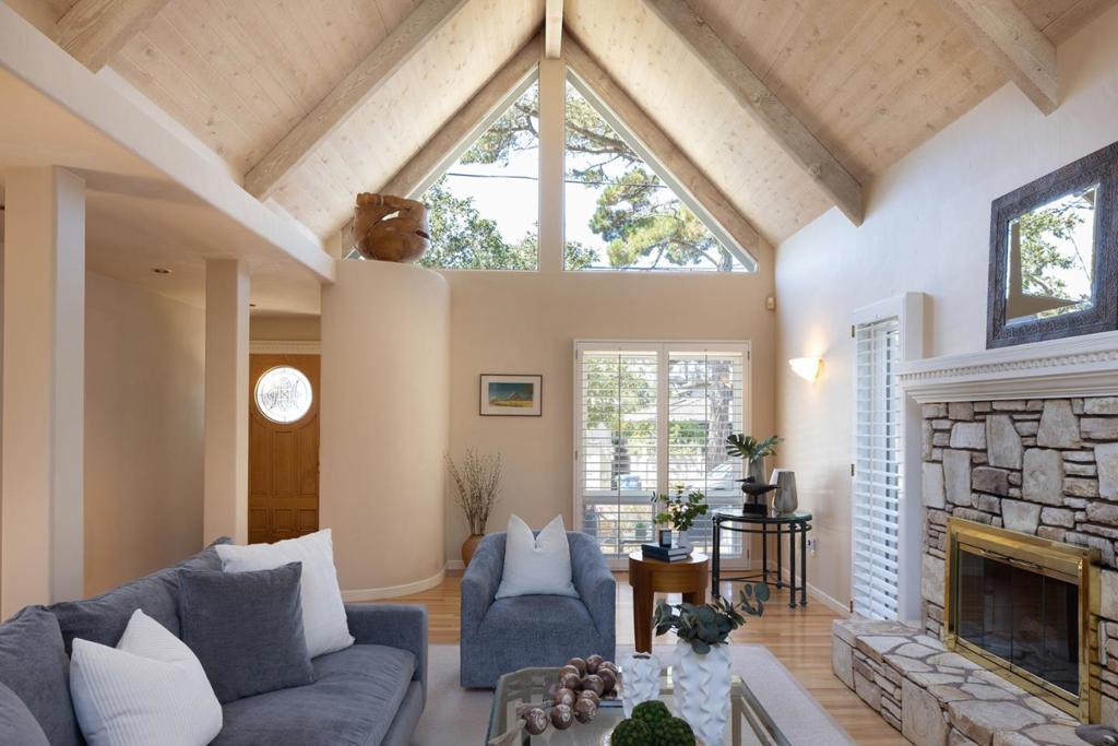Pardon My Tree sits in Carmels coveted Golden Rectangle, offering the rare convenience of a flat stroll to downtown shops, restaurants, and to the beach. Step inside to a warm and inviting living room with a classic Carmel stone fireplace, vaulted wood-beamed ceiling, and expansive windows that bathe the space in natural light. Both bedrooms are generously sized, with plush wool Berber carpet, ample closets, and sliding doors that open to a private deck. Details include hardwood floors, wood shutters, an open kitchen with adjoining dining area and 1 car garage with storage. Outdoors, multiple decks and a Carmel stone patio create serene spaces to enjoy the coastal lifestyle. With its one-level floor plan, meticulous upkeep, and unbeatable location, Pardon My Tree is a quintessential Carmel retreat where every day feels like a vacation and downtown is just a short, easy walk away.