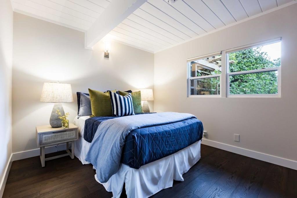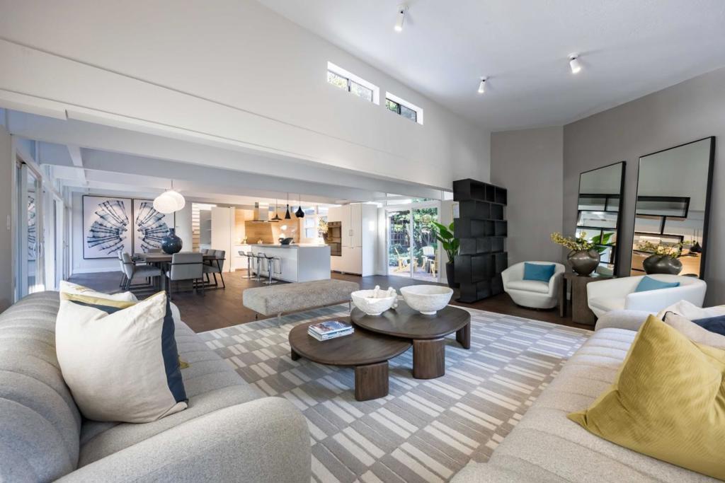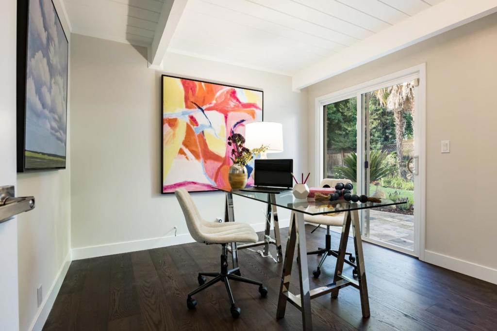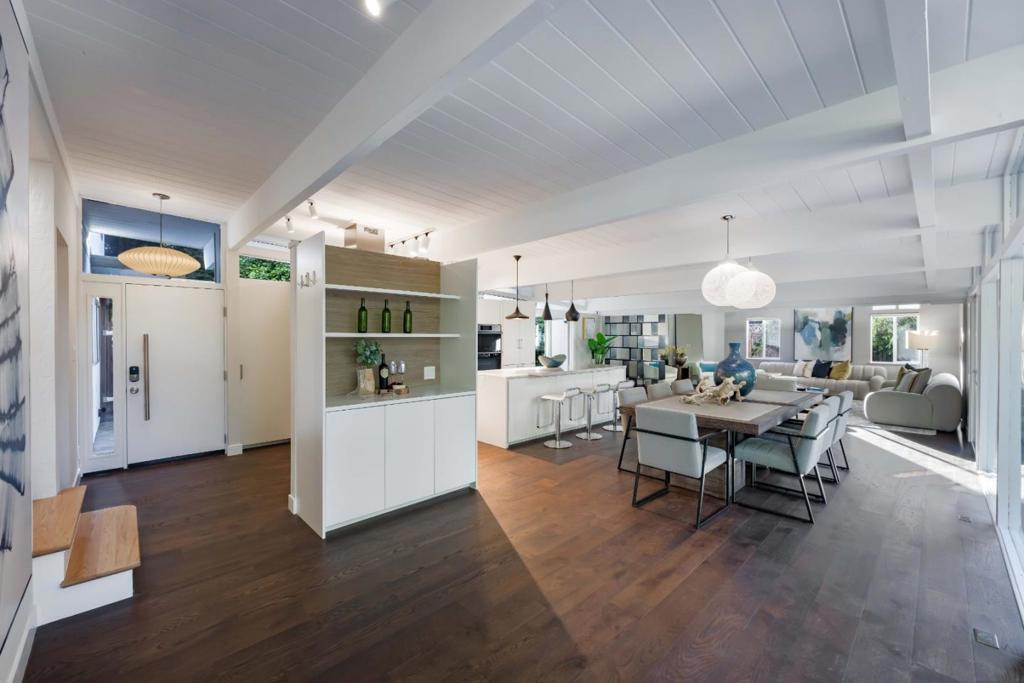 Set on nearly a quarter acre, this expanded and updated mid-century modern home offers more than 3,600 square feet of living space. Vaulted paneled ceilings, walls of glass, and distinctive architectural character speak to the home's original era, while thoughtful upgrades like oak floors and a modern kitchen with high-end Dacor appliances bring it into the present. The bright, open layout creates easy flow between the living room, dining area, and kitchen, with natural light pouring in from multiple angles. With six bedrooms, including a spacious and private primary suite, plus two dedicated offices, the home provides exceptional flexibility for families, guests, or working from home. The backyard is ideal for both entertaining and unwinding, complete with a large patio and sports court. All of this just minutes from University Avenue, with parks, commute options, and top-rated schools like Duveneck Elementary and Palo Alto High nearby (buyer to verify eligibility).