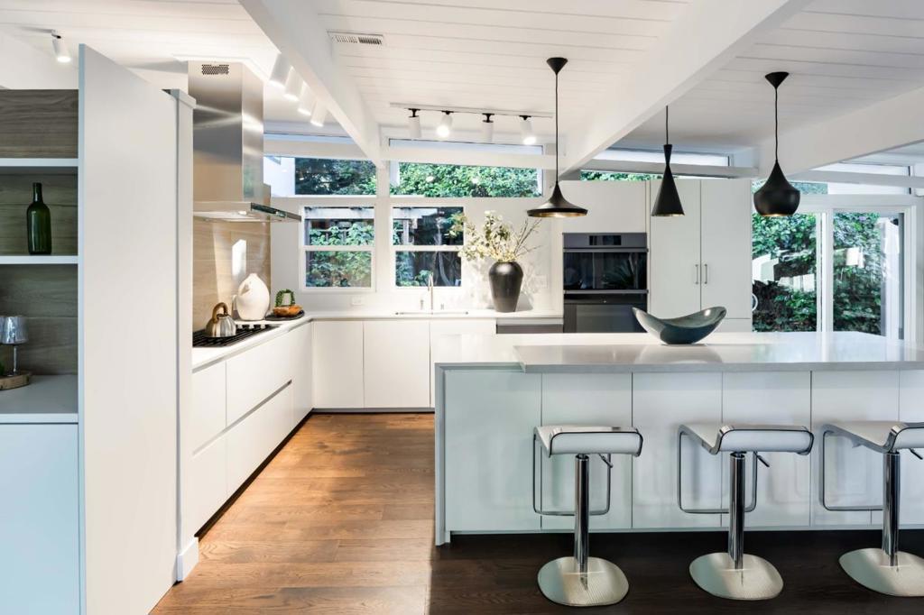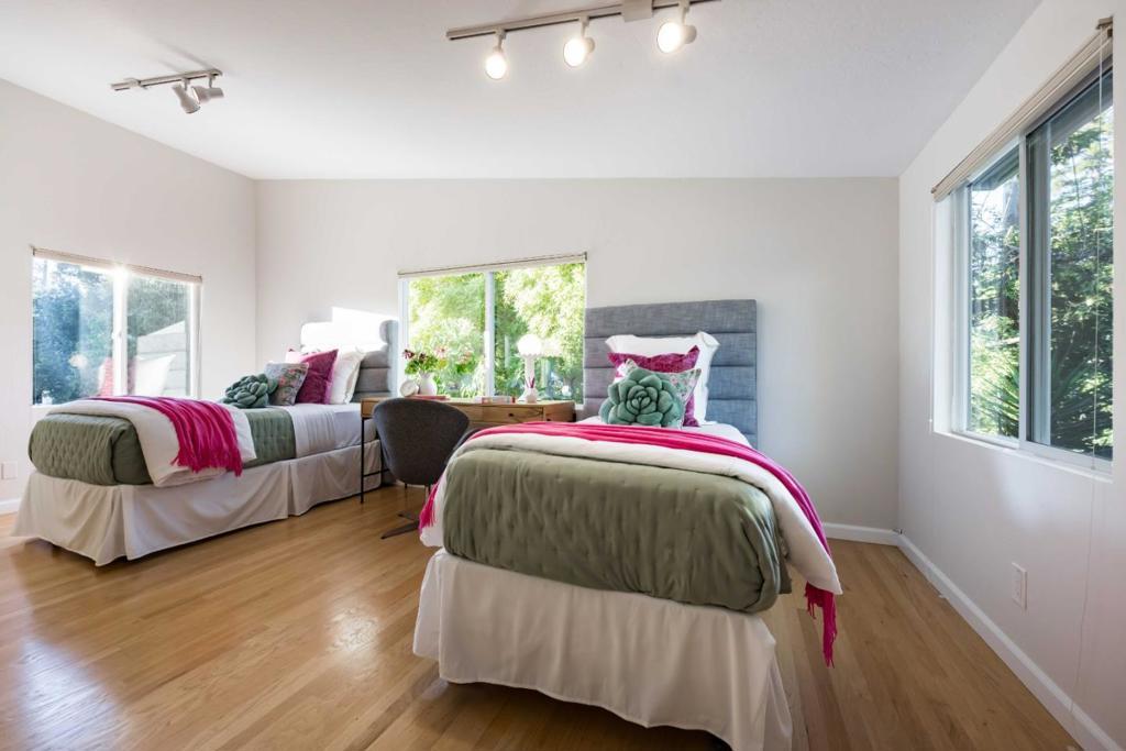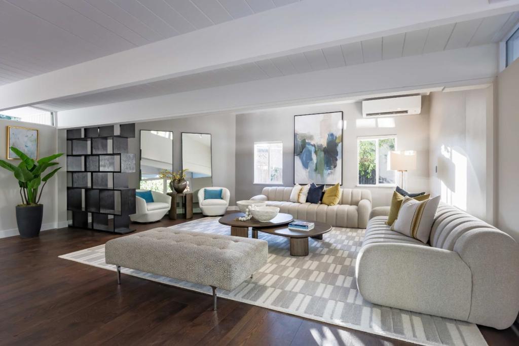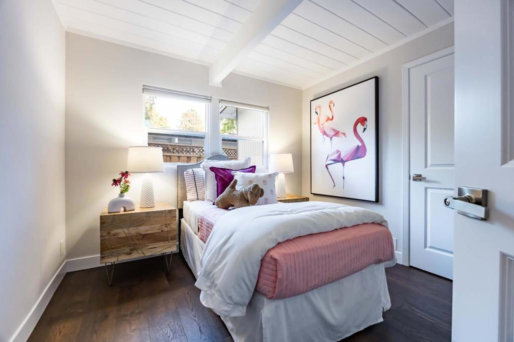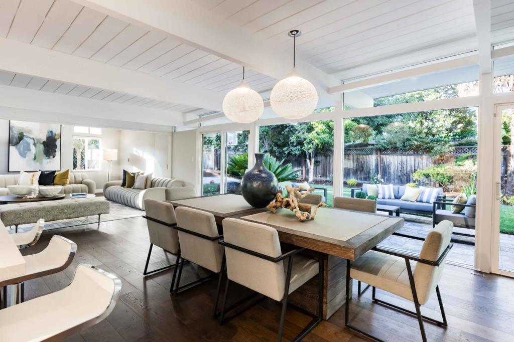 Set on nearly a quarter acre, this expanded and updated mid-century modern home offers more than 3,600 square feet of living space. Vaulted paneled ceilings, walls of glass, and distinctive architectural character speak to the home's original era, while thoughtful upgrades like oak floors and a modern kitchen with high-end Dacor appliances bring it into the present. The bright, open layout creates easy flow between the living room, dining area, and kitchen, with natural light pouring in from multiple angles. With six bedrooms, including a spacious and private primary suite, plus two dedicated offices, the home provides exceptional flexibility for families, guests, or working from home. The backyard is ideal for both entertaining and unwinding, complete with a large patio and sports court. All of this just minutes from University Avenue, with parks, commute options, and top-rated schools like Duveneck Elementary and Palo Alto High nearby (buyer to verify eligibility).