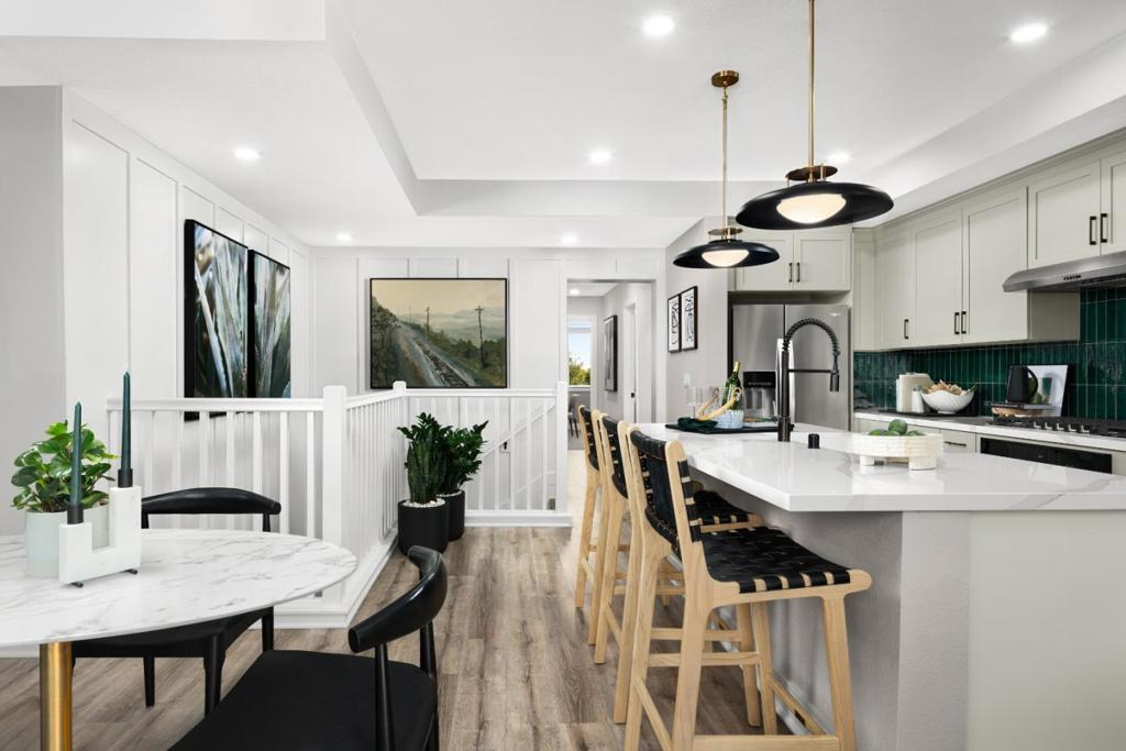 Experience elevated living in this 3-bedroom, 2-bath model home with 1,493 sq. ft. of beautifully upgraded space at The Lumberyard. Featuring Shaker panel doors in Dove Grey with a Winter White kitchen island, this home offers a farmhouse sink with quartz countertops, custom tile backsplash, and Whirlpool stainless steel appliances. Matte black fixtures and upgraded lighting bring a modern edge, while custom flooring completes the designer feel. Enjoy downtown views and a prime location - furnishings available at an additional price.