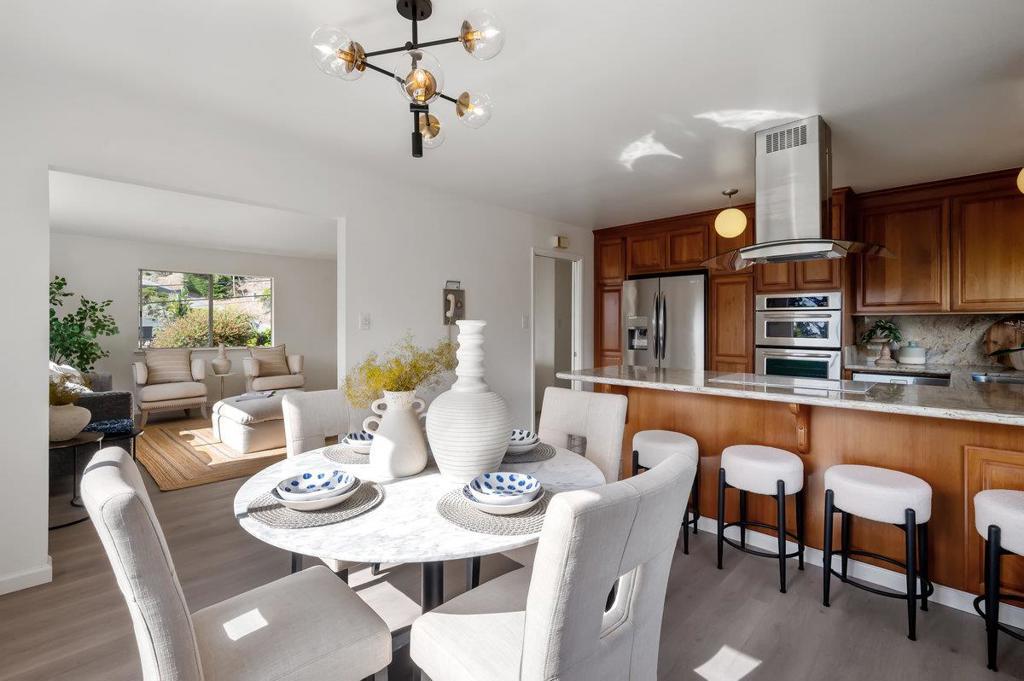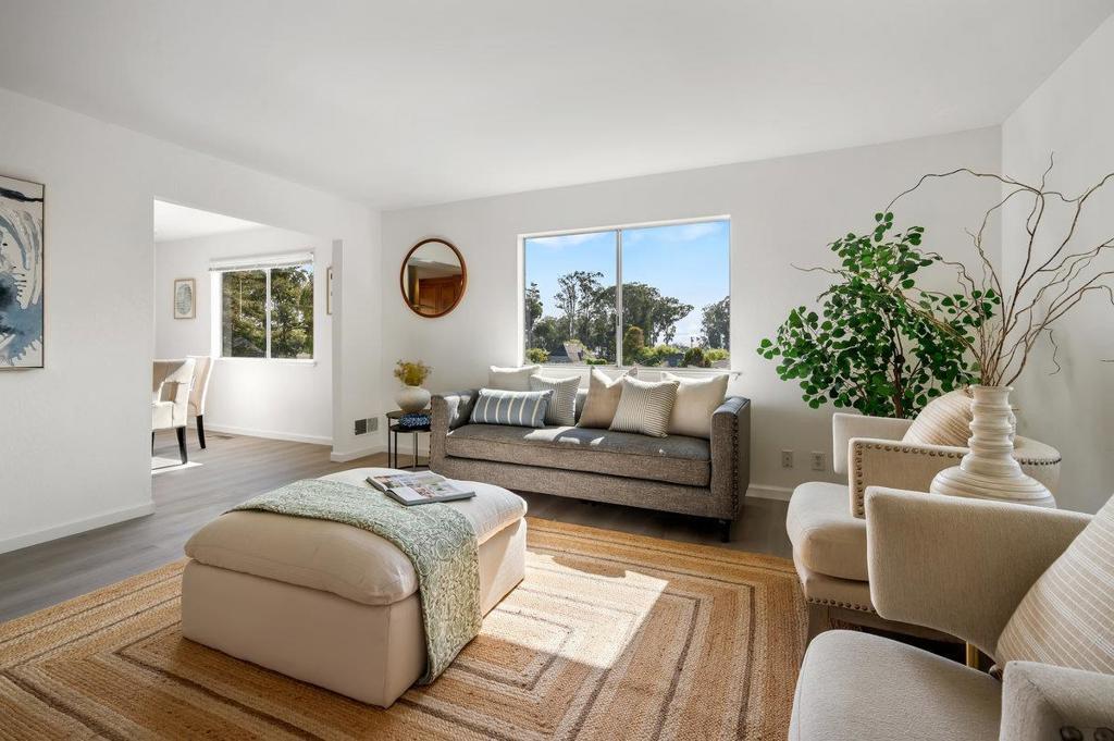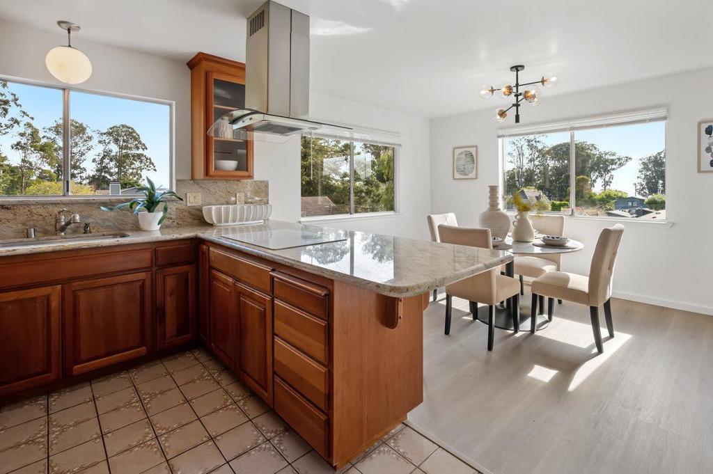 Welcome to coastal living at its finest in El Granada! This spacious 4BR/3BA home offers over 2,000 sq. ft. of living space on a rare 10,000+ sq. ft. lot perfect for future expansion, ADU potential, or even a possible lot split. Updated kitchen and bathrooms, new flooring, and fresh interior paint make it move-in ready. From the kitchen and dining room, enjoy spectacular peekaboo sunset views over the Pacific. The large downstairs family room with bedroom and full bath provides a private retreat for guests or extended family. An enormous 3-car garage allows for ample parking, storage, or workshop space. The location is just as special as the home. Set directly across from Quarry Park with its miles of hiking trails, and only blocks from the Pacific Ocean, Pillar Point Harbor, and downtown Half Moon Bay, you'll enjoy all that El Granadas coastal charm has to offer. Surf world-class waves at Mavericks, stroll the scenic Coastal Trail, or savor fresh seafood and local brews all just minutes from your front door. With its generous lot size, versatile floor plan, ocean-view dining, and unbeatable location, 422 Santa Maria is more than just a home it's an opportunity to create your dream coastal lifestyle in one of the Bay Area's most sought-after seaside communities.