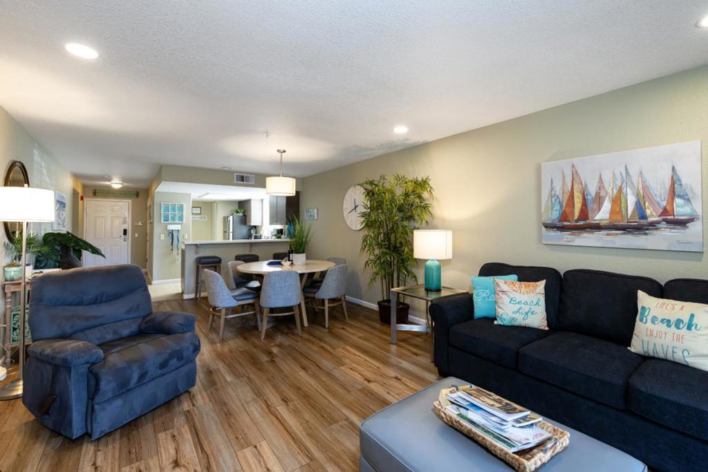 Beautiful Ground-Level End Unit with ADA Features at Seascape Resort--Experience the best of coastal living in this single-level, fully furnished condo, perfectly situated just steps from miles of sandy shoreline. This ground-level end unit offers remodeled kitchen and bathrooms, including an ADA-accessible bath, newer stainless steel appliances, and luxury vinyl plank flooring throughout. Rare Three inviting patios with semi-ocean views overlook spacious lawn areas and nature, creating a serene indoor-outdoor retreat. Comfortably sleeping six, the condo is decorated with a relaxed beach vibe and is turnkey ready for immediate enjoyment or rental. Owners benefit from a strong rental history, future bookings, marketing materials, and guest lists, all managed by the current owners. Resort amenities include a pool, restaurant/bar, park, and walking trails, with golf, tennis, shops, and dining nearby. Perfectly located just 10 minutes to Capitola, 20 minutes to Santa Cruz, and 40 minutes to the Monterey Peninsula. Owners can enjoy up to 90 days of personal use annually, and while rentals are not pet-friendly, owners are welcome to bring their furry friends.