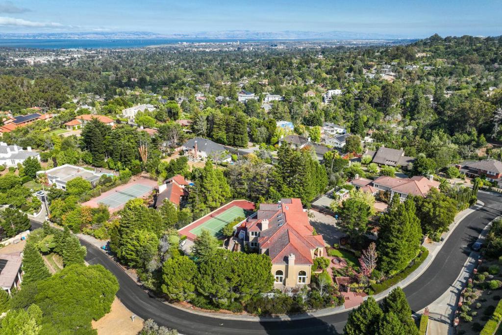 Experience the perfect blend of luxury, elegance & California living in this breathtaking Mediterranean estate. This residence offers unparalleled privacy & sweeping views of the San Francisco Bay & surrounding mountains. A long, gated driveway welcomes you setting the stage for the home's elegant interior. Step inside to a dramatic, light-filled foyer featuring a graceful winding staircase that leads into an expansive living room framed by floor-to-ceiling windows showcasing the spectacular views.The gourmet chef's kitchen is comes complete with a large center island, elegant stone countertops, & top-of-the-line Viking stainless steel appliances. A richly wood-paneled library/office & spacious formal living & dining areas add sophistication, while new double-pane windows enhance comfort & energy efficiency throughout the home.Upstairs a primary suite awaits, featuring a spa-inspired bath with a jetted soaking tub, alongside generously sized bedrooms offering comfort & privacy. The impeccably landscaped grounds create a true oasis, featuring a resort-style pool & spa, & private tennis court. Perfect for both relaxation & entertaining, this property offers an unmatched lifestyle in one of California's most coveted settings.