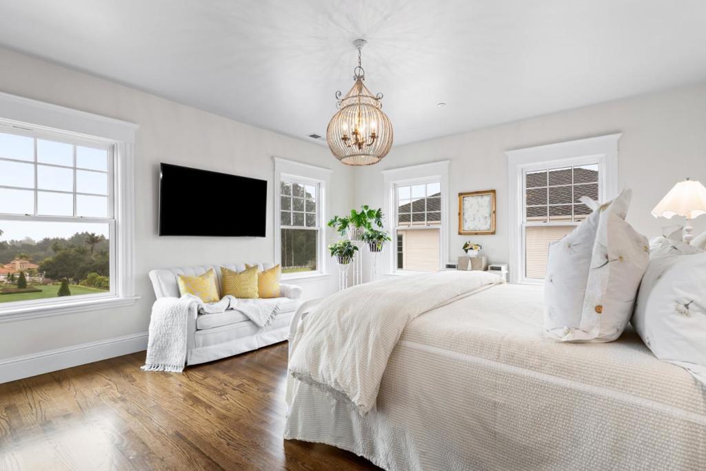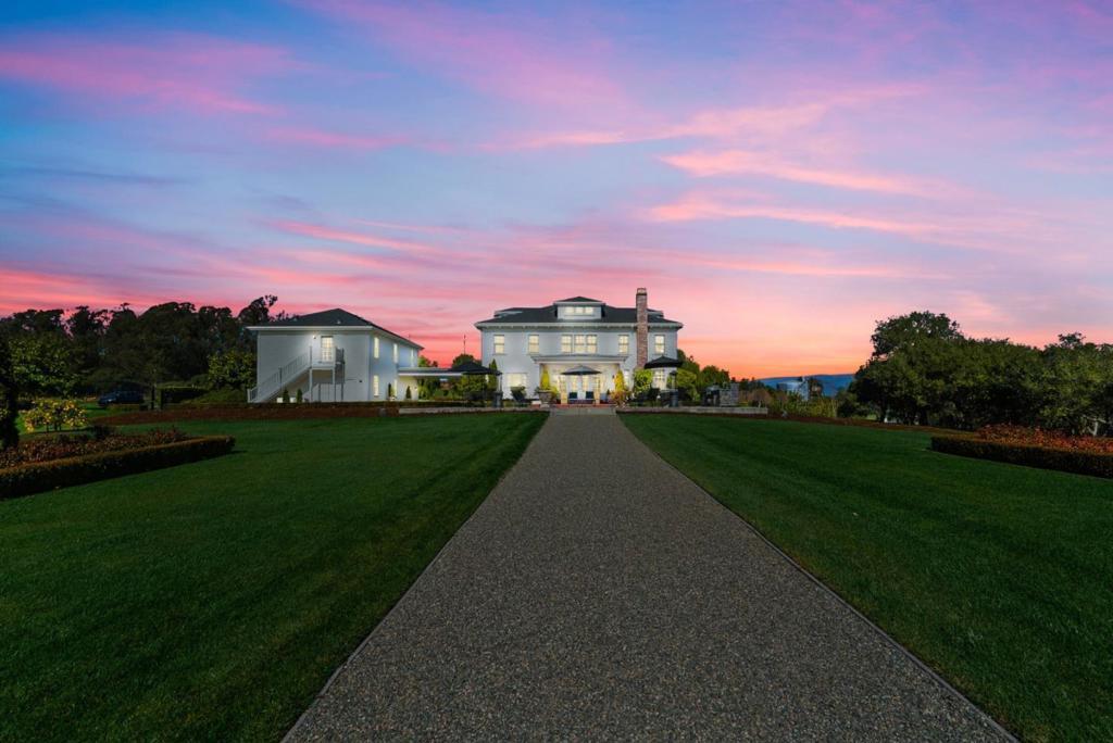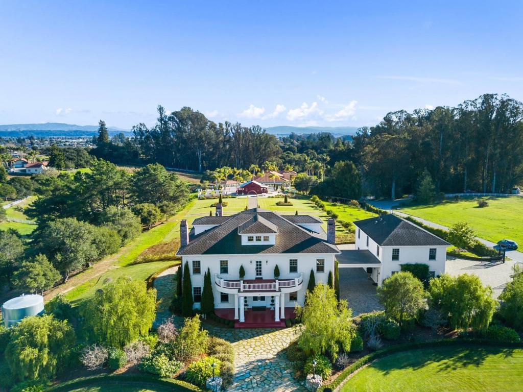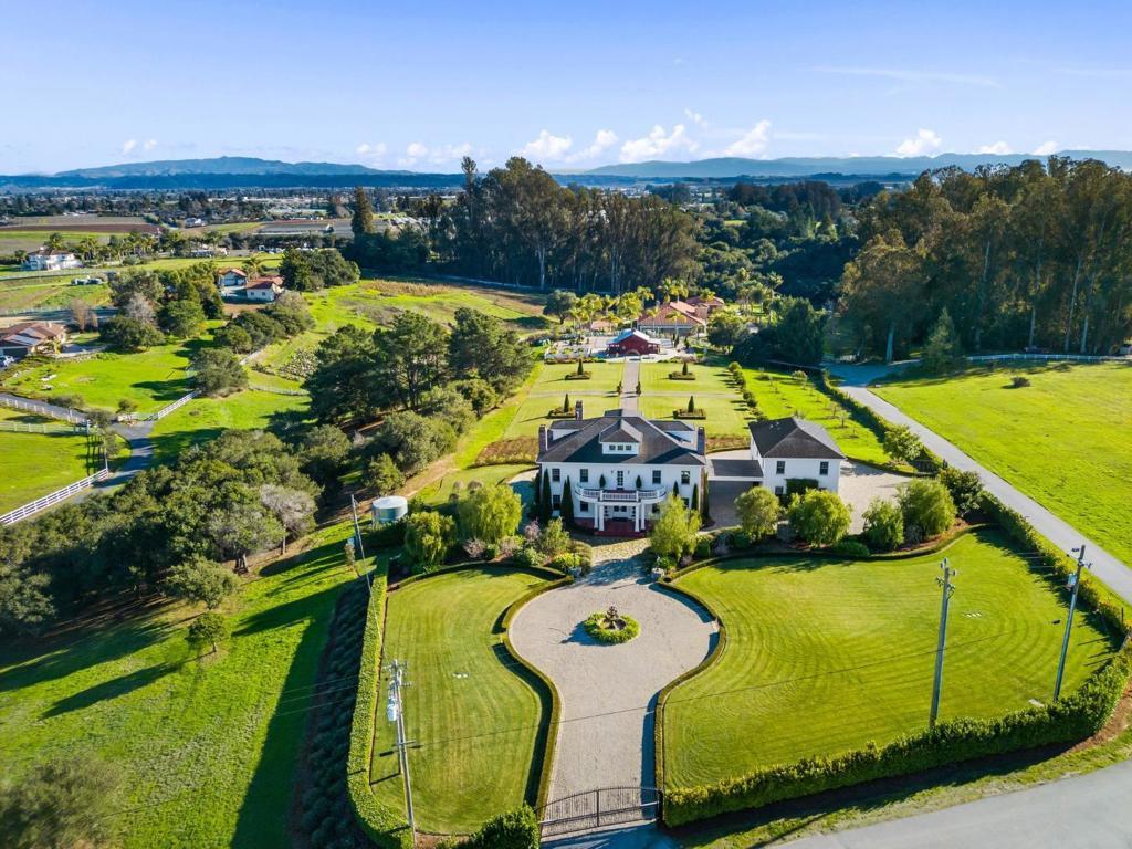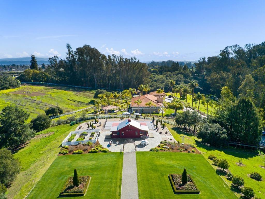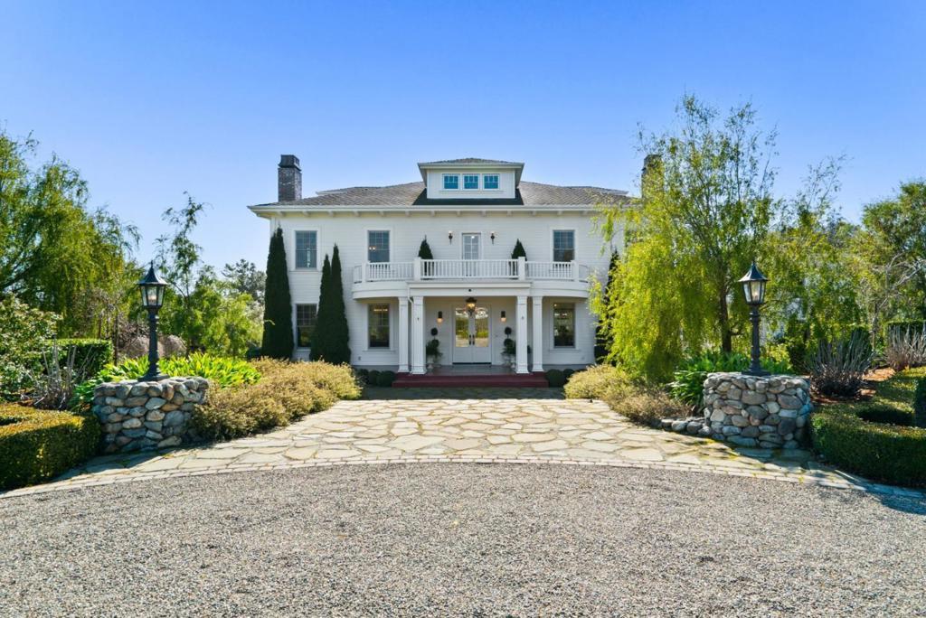 A modern country estate offering a captivating blend of refinement, sophistication & California living at its finest. Designed for both entertaining & luxurious everyday living, integrating breathtaking views, contemporary amenities & tranquility. Gated entry gives way to alluring front porch, leading to the spacious foyer featuring coffered ceilings & grand staircase. Elegant oak floors can be found sweeping throughout. Chefs kitchens w top tier appliances, large island & walk-in pantry. Natural light abounds as expansive windows provide panoramic vistas, framing the lush grounds like living masterpieces. Thoughtfully designed floorplan blends high end finishes & effortless livability. Situated on 5+ landscaped acres, the manicured grounds create an entertainers paradise. Indoor-outdoor living is enhanced by a generous patio complete w its own kitchen. Stroll the outdoor oasis of manicured lawns & rows of citrus trees to a fenced garden featuring raised beds & potting shed. Pickleball anyone? Enjoy countless hours of fun on your own court, making a lifetime of memories. Car enthusiasts rejoice in the 3 car garage for all your treasures. Separate ADU located above the garage. A rare opportunity to own a serene retreat, a bespoke masterpiece designed for those seeking their ace.