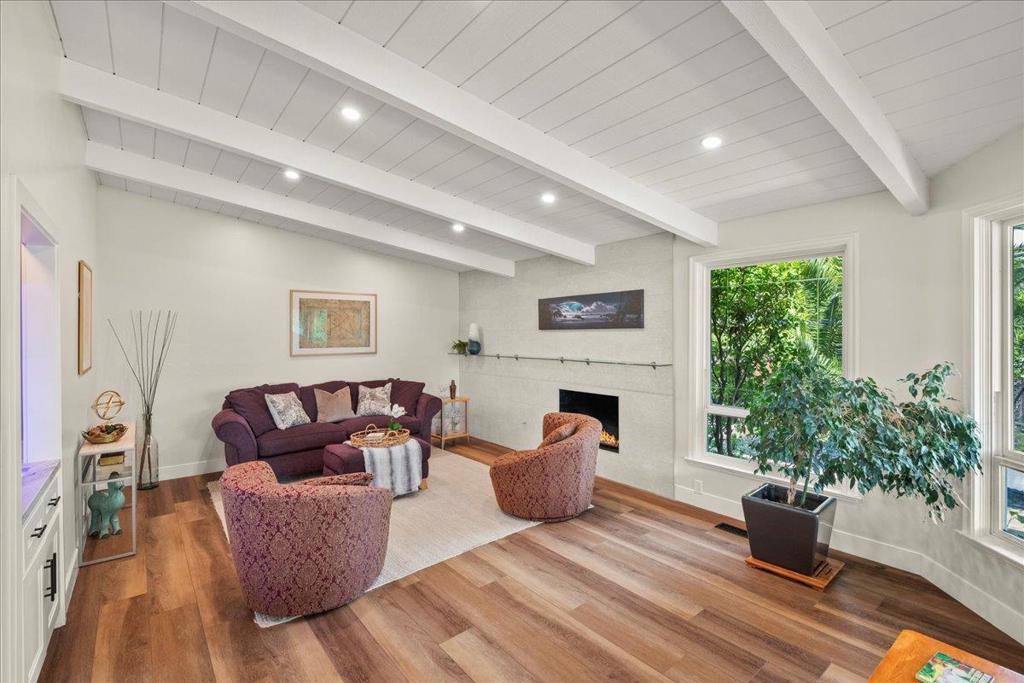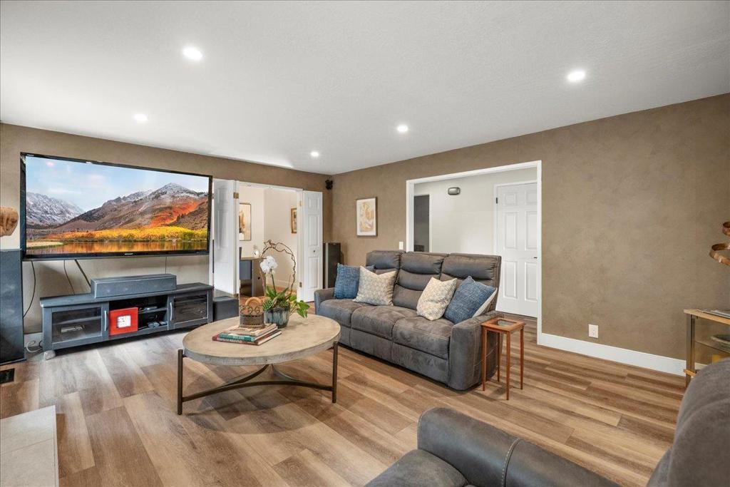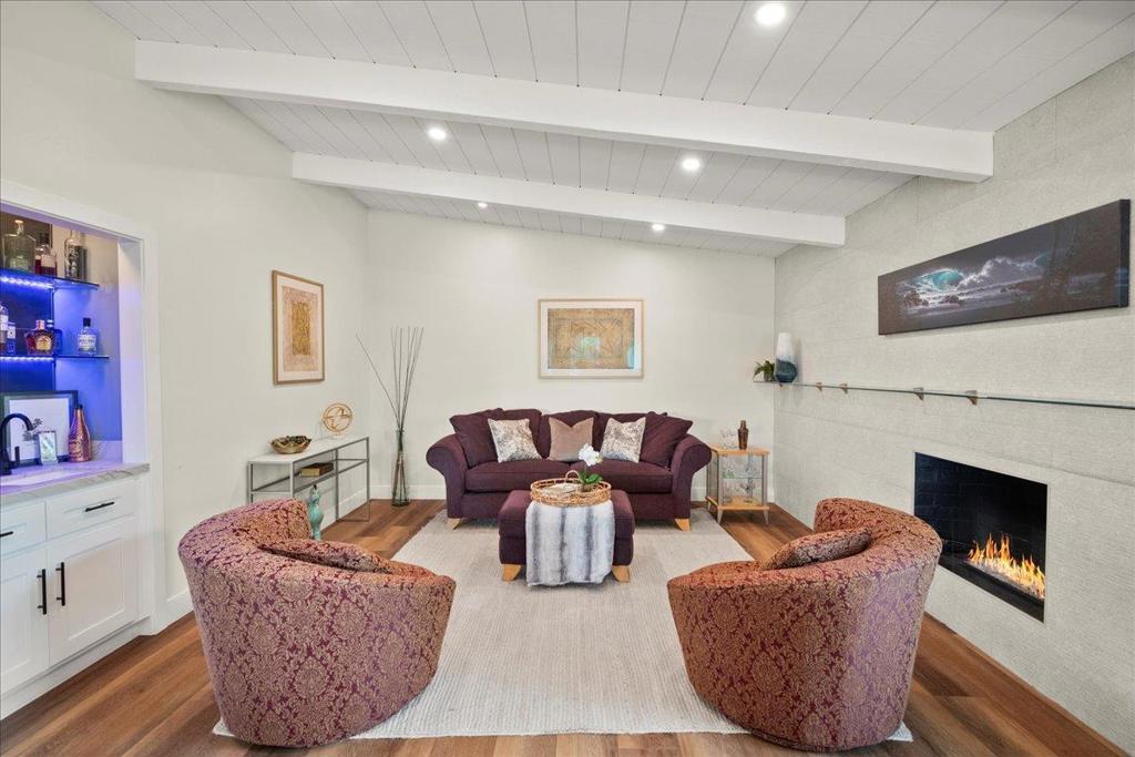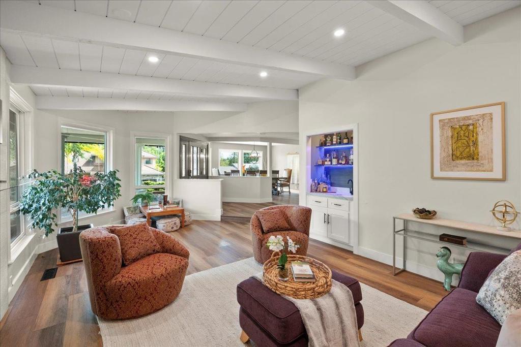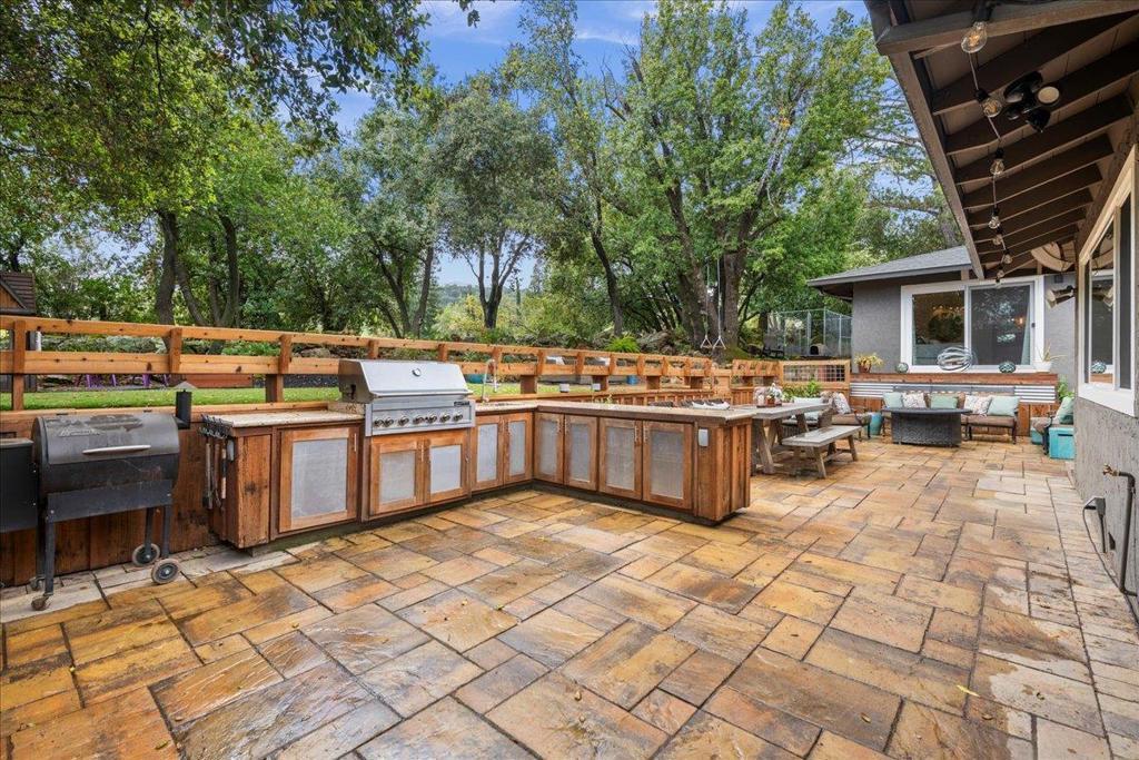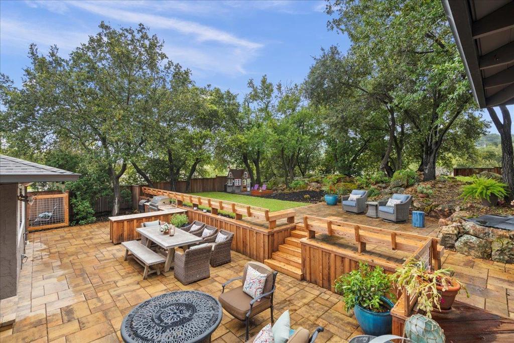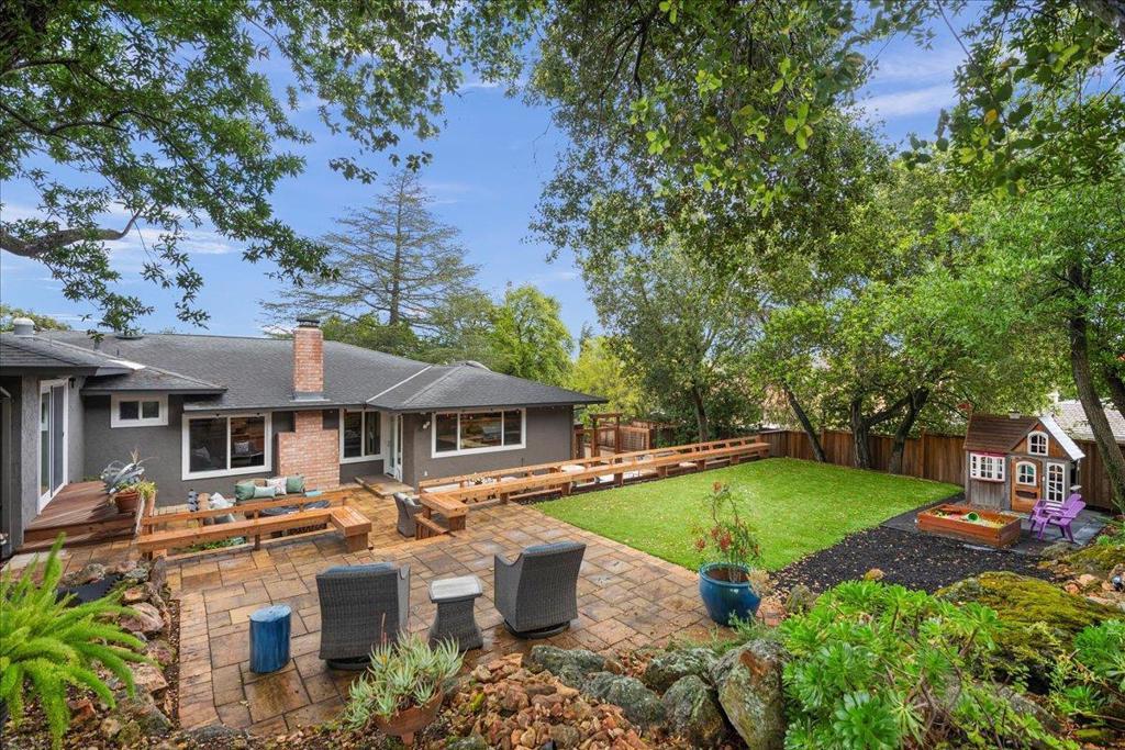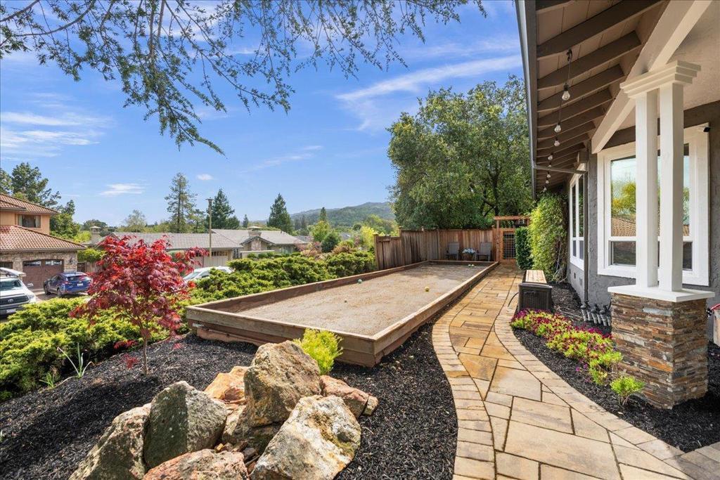 Views views views from this Upgraded Almaden Country Club 3/2.5 + separate Office on a 12,632 sq. ft. view lot. Private, Pride of ownership home w/ open floorplan, upgraded Gourmet kitchen w/center island open to Family room. Family room with gas fireplace, custom Sycamore mantel, and recessed lights. Updated Living room with a beautiful tiled wall Fireplace and glass shelving, vaulted ceiling and custom wet bar. Dining room with floor to ceiling windows. Large Primary w/ spa-like walk-in shower, quartzite stone counters, tile floors and high end Washlet toilet. Two additional bedrooms + separate office. Upgraded Hall bath with quartzite stone countertops, tile floors, and glass enclosure tub/shower. Luxury Vinyl plank flooring. Indoor outdoor living in the Backyard oasis with outdoor kitchen, upper and lower paver patios with a natural Rock art garden with waterfall and views of the open space and Mount Umunhum, Three car garage. Spacious private lot sits up off of the street, and offers an "Executive Bocce Court". Simonds, Castillero, and Leland High