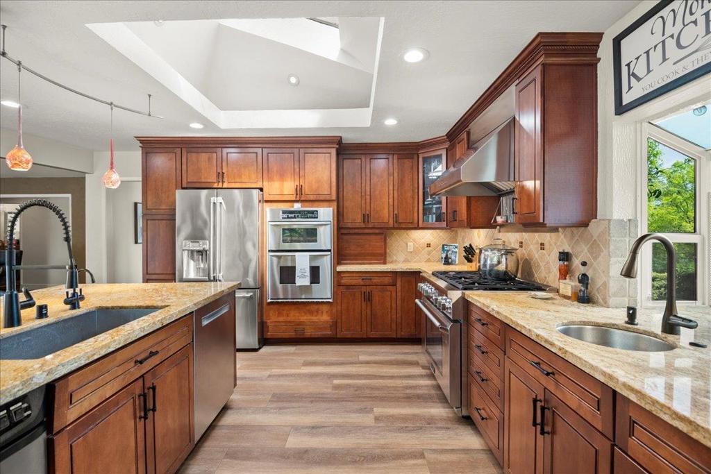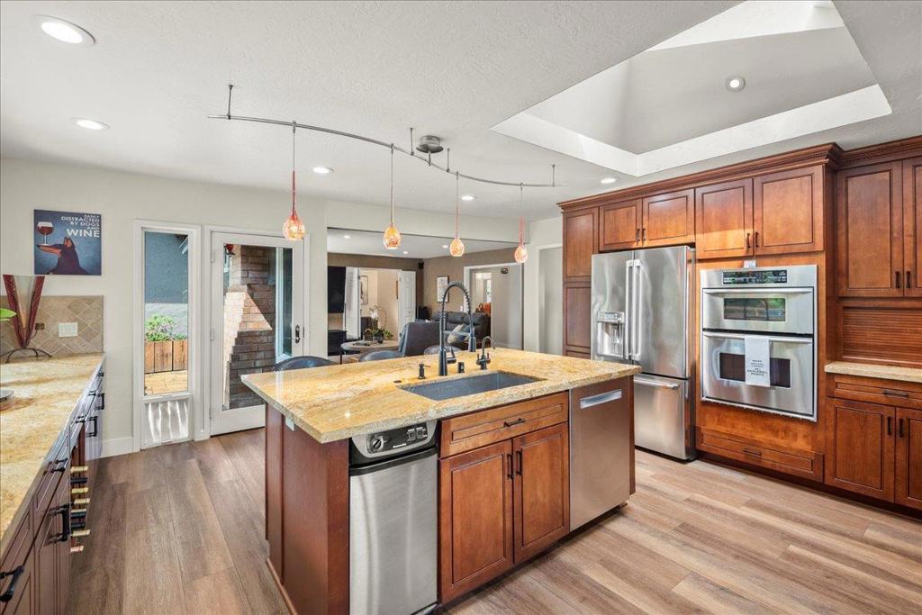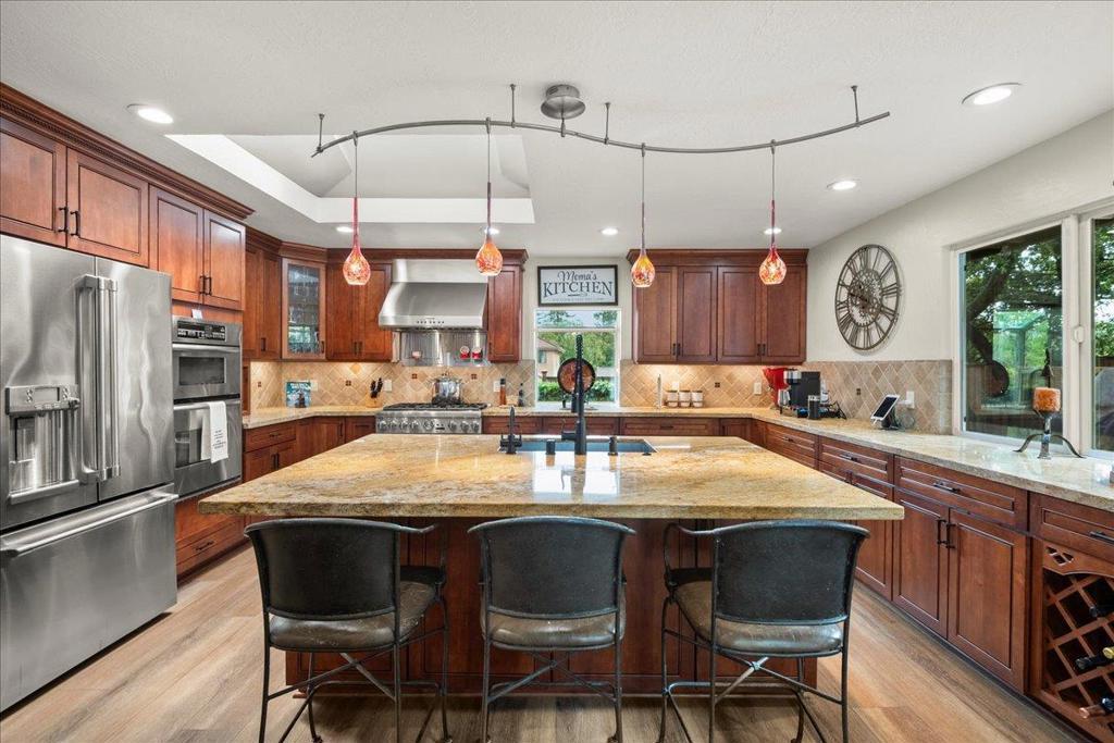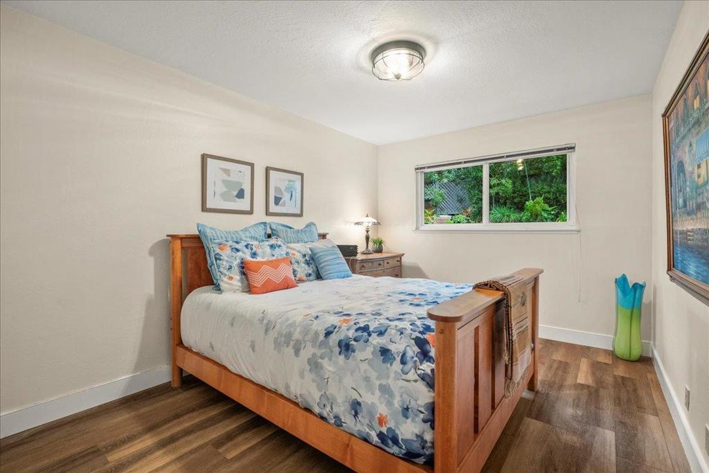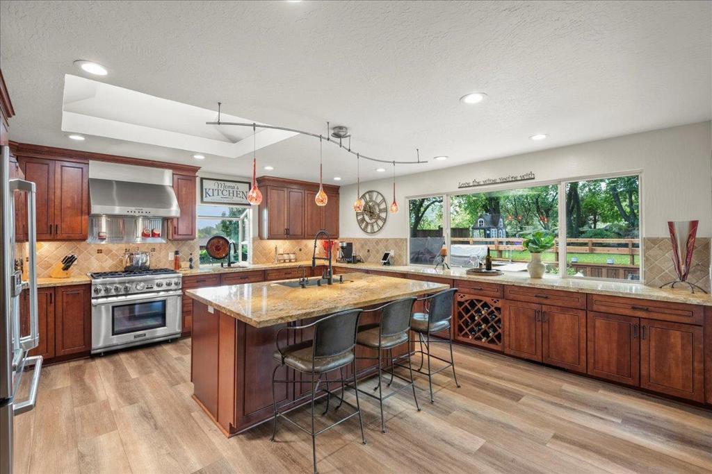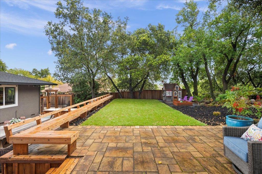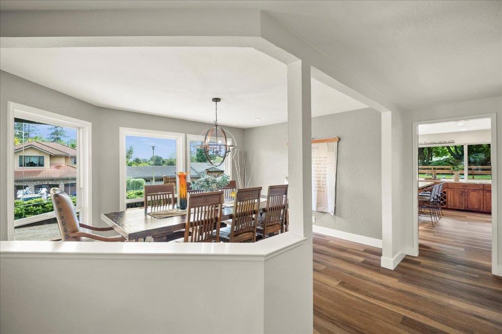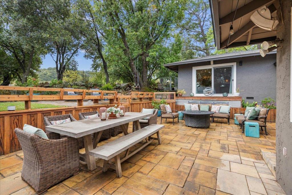 Views views views from this Upgraded Almaden Country Club 3/2.5 + separate Office on a 12,632 sq. ft. view lot. Private, Pride of ownership home w/ open floorplan, upgraded Gourmet kitchen w/center island open to Family room. Family room with gas fireplace, custom Sycamore mantel, and recessed lights. Updated Living room with a beautiful tiled wall Fireplace and glass shelving, vaulted ceiling and custom wet bar. Dining room with floor to ceiling windows. Large Primary w/ spa-like walk-in shower, quartzite stone counters, tile floors and high end Washlet toilet. Two additional bedrooms + separate office. Upgraded Hall bath with quartzite stone countertops, tile floors, and glass enclosure tub/shower. Luxury Vinyl plank flooring. Indoor outdoor living in the Backyard oasis with outdoor kitchen, upper and lower paver patios with a natural Rock art garden with waterfall and views of the open space and Mount Umunhum, Three car garage. Spacious private lot sits up off of the street, and offers an "Executive Bocce Court". Simonds, Castillero, and Leland High