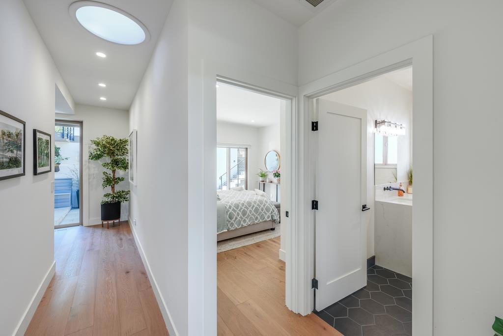 Step into a world of refined living, where sweeping ocean views and meticulous upgrades set a sophisticated stage on Santa Cruz's coveted Westside. As sunlight dances across wide-plank European oak floors, every space reveals luxurious touches, from the chef's kitchen with dual-fuel range with split oven, quartz counters, and custom cabinetry, to a remodeled sunken family room aglow with diffused art lighting. Slide open to the ocean view deck, perfect for evening gatherings around the outdoor kitchen, with modern landscaping and lighting elevating outdoor entertaining. The primary suite wows with panoramic vistas, dual walk-in closets, and automation for sunset shades and heated floors. Imagine a seamless blend of indoor-outdoor living, steps from legendary surf, coffee houses, and wine bars. Owned solar, EV charging, and smart features ensure comfort and convenience at every turn. This turn-key residence invites you to experience coastal elegance and contemporary luxury beyond the expected.