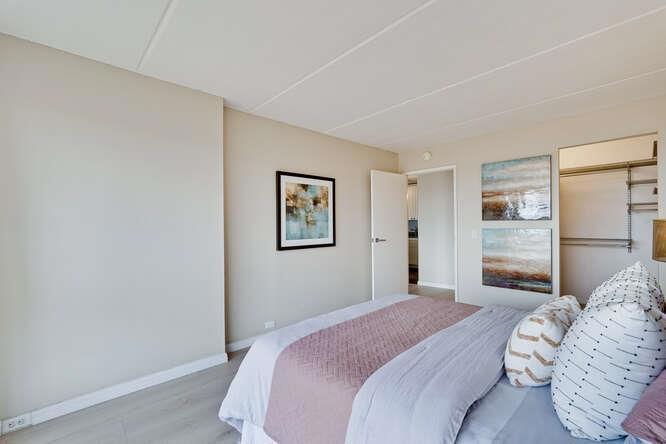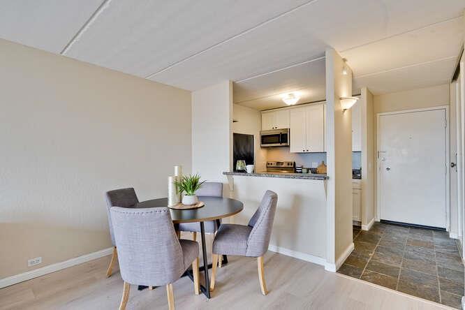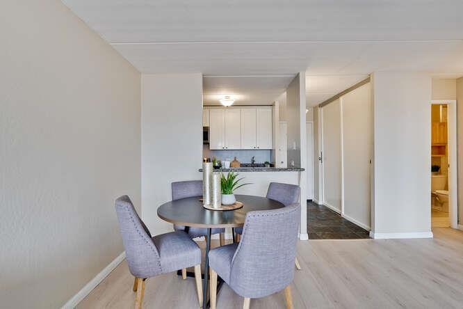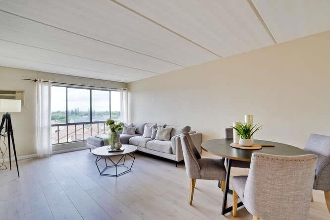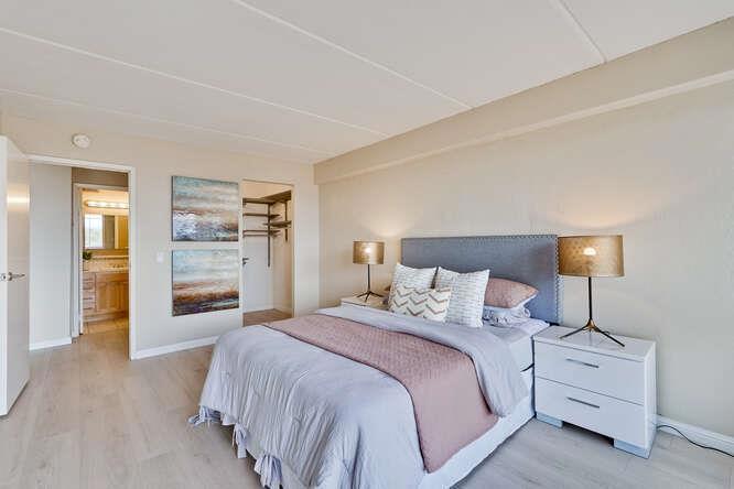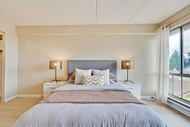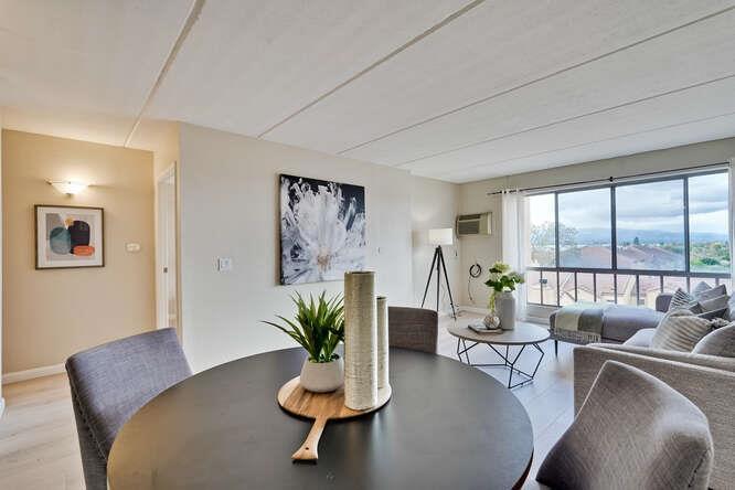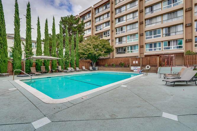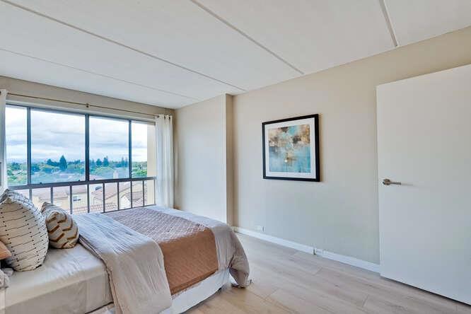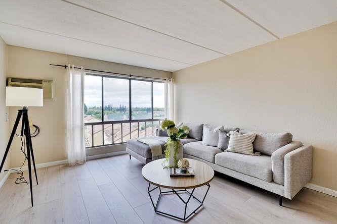 Exceptional value at $438,000! Bright & airy top-floor end-unit with elevator access. Expansive windows showcase Silicon Valley, city lights & mountain views. Spacious bedroom w/ walk-in closet + pantry/storage (washer/dryer allowed w/ HOA approval & permits). Updated kitchen w/ granite counters, modern cabinets & dishwasher. Bath w/ shower over soaking tub. New LVP flooring, wall AC/heating in living rm + baseboard heating in bedroom. Secure bldg w/ assigned storage & 1 gated parking (#29). Community amenities: clubhouse, pool, gym, sauna & laundry. Prime location near Santa Clara Town Center, shopping, dining, transit & freeways. Move-in ready and priced to sell-----your chance to own in the heart of Silicon Valley!