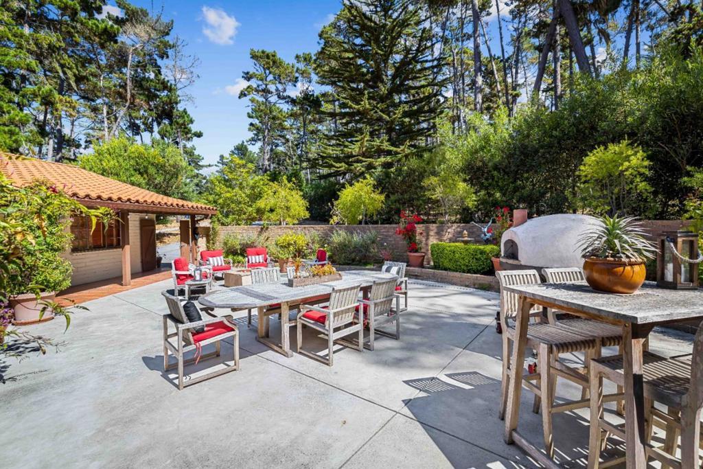 One of the last Pebble Beach "Ranchette" estates this charming Post Adobe style home set on 1.3 all usable acres offers all the classic characteristics of the architecture with modern day finishes and features to enjoy. Entering through the impressive wooden gate the left fork of your welcoming drive leads you to the large traditional entry courtyard with thick wooden gates, gurgling fountain, flowering plants and an abundance of outdoor dining and relaxing space. Moving inside there is a perfect blend of elemental features of thick adobe brick walls, wooden beamed ceilings and window framing throughout combined with modern finishes of wide plank and stone floors, updated kitchen, baths and more. Featuring spacious yet cozy rooms with an abundance of natural light there is a library style den, beamed living room with a sunroom on the sunny South side, a kitchen/dining room combined and then a nicely separated primary suite with high vaulted ceilings, fireplace and windows on all sides. Traveling the rustic right fork gravel drive takes you past a fenced pasture where horses once neighed and whinnied when you arrived but now leads you to a private and serene renovated guest cottage overlooking a seasonal creek on the Southwest side. A unique property and opportunity to enjoy.