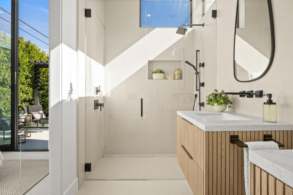 Two Exceptional Homes on One Expansive Lot An extraordinary opportunity to own two beautifully appointed 3-bedroom, 2-bath residences on a quiet street in a coveted neighborhood with top-rated schools. The front home 1,658 sf, a thoughtfully expanded and remodeled 1940s charmer, effortlessly blends timeless architecture with modern sophistication. A chefs kitchen showcases Taj Mahal quartzite countertops, a 36 gas range, and a built-in refrigerator perfect for culinary inspiration. The inviting living room features a cozy fireplace, integrated surround sound, and sliding doors that open to the private backyard, creating a seamless indoor-outdoor connection. The rear residence is a 1200 sf contemporary masterpiece, designed with exceptional attention to detail. The expansive great room is anchored by 11-foot sliding glass doors, blurring the line between indoors and out. Every element reflects luxury from the architectural finishes to the state-of-the-art whole-home tech system with integrated speakers throughout. Ideal for multigenerational living, extended families, or live-in-one/rent-the-other flexibility, this rare offering combines versatility, craftsmanship, and an unparalleled level of quality. Experience the art of living with two distinct homes, one remarkable property.