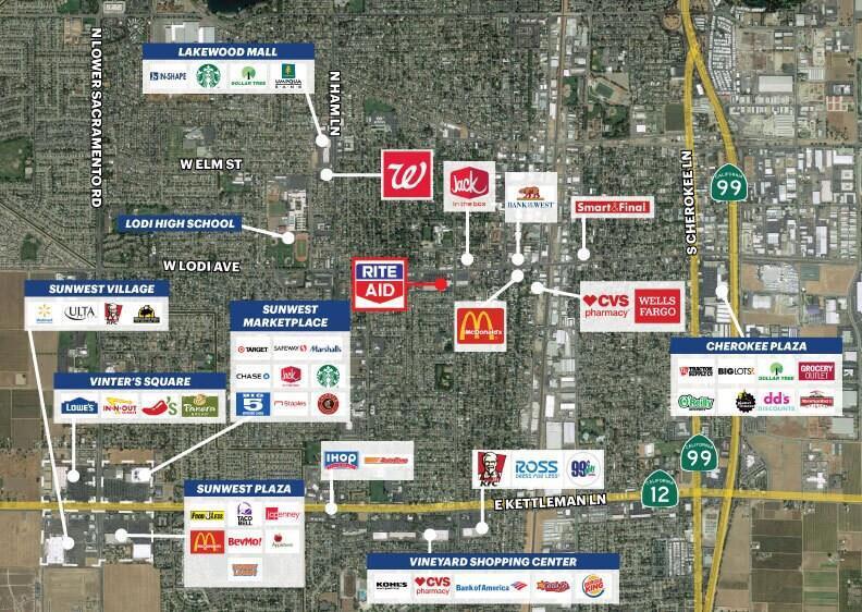 $14/SF NNN. NNN approximately $3.5/SF subject to change. Former Rite Aid, vacated 07/31/25 after 36 years of operation. 28,456sqft total space. Roof 8 years old, elevation 20ft from ground level. In a shopping mall next to Savemart grocery store and restaurants including Subway, Taco Bell, Domino's Pizza, Hummus Mediterranean restaurant, Sky wok, Tony's pizzeria, The Avenue Grill and shops including Fedex, Credit Union, Fashion Nails, polish shop and Metro PCS/T-mobile.