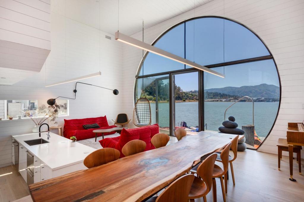 Luxurious, Four-Year Old Floating Home with Spectacular Views in Sausalito. Discover serenity and elegance in this stunning floating home located in picturesque Sausalito, offering unparalleled views of open water, Mount Tam, and breathtaking sunsets. Completed in December 2021, this modern marvel seamlessly blends high design with waterfront living. This home has been featured in many publications for its design and craftsmanship such as Dwell and The Local Project. Imagine waking up to an expansive view of the water and Mt Tam as framed by a giant circular window and enjoying your morning coffee while soaking in the blue zone. Whether you're seeking a permanent residence or a retreat for an active healthy lifestyle, this houseboat offers a unique opportunity to embrace the beauty of Sausalito's waterfront, where you can swim, kayak, wind-surf, or waterski from your living room. Don't miss your chance to own this extraordinary one-of-the-kind piece of waterfront paradise. See website for full list of features.