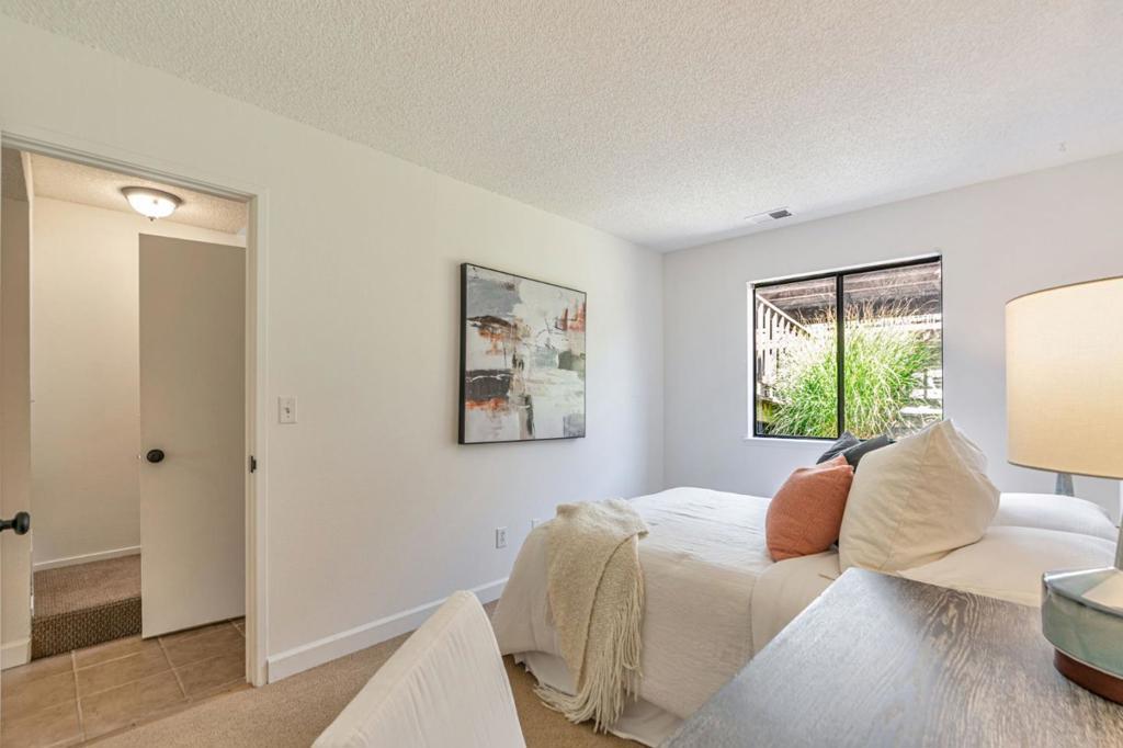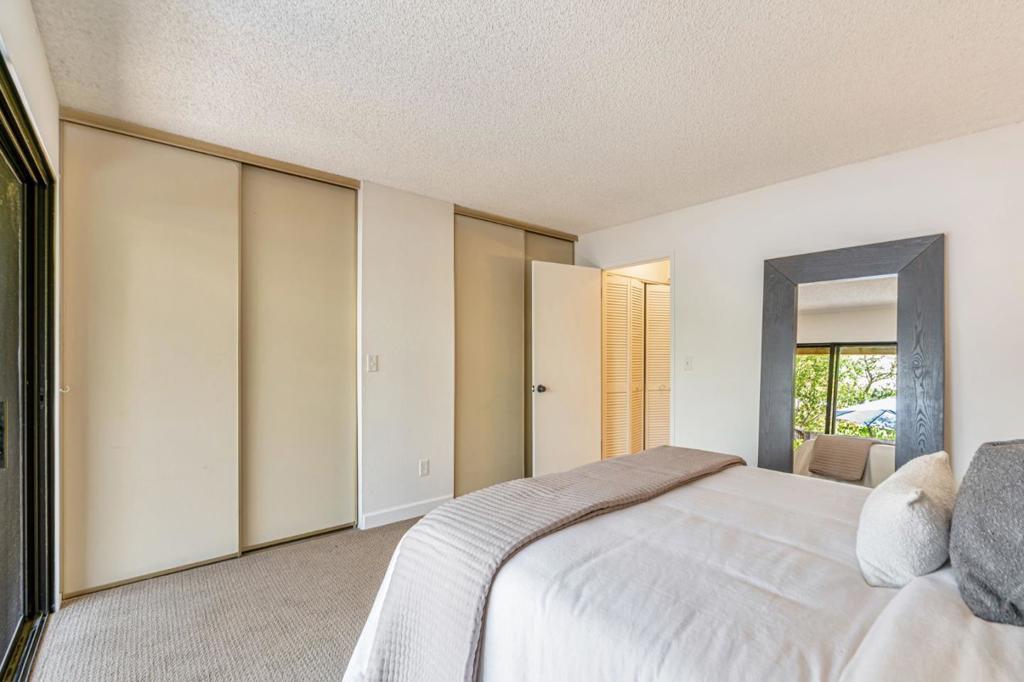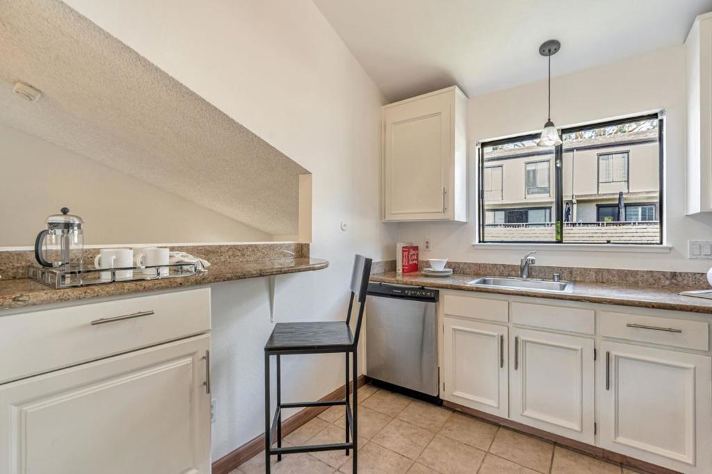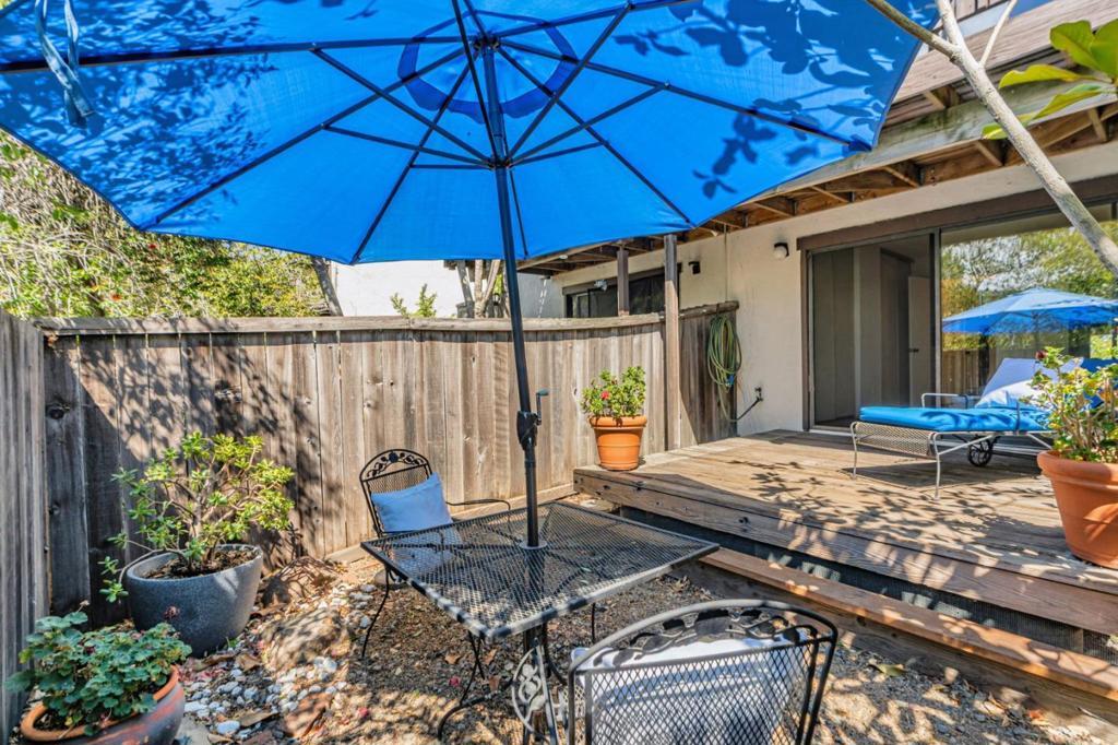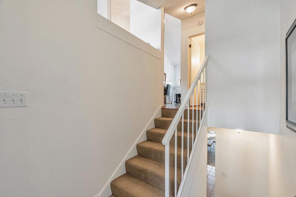 Sited in a prime location in the heart-of-Greenbrae. This 2-bedroom, 1.5 bathroom condominium offers a perfect blend of comfort and community in Central Marin. The building is in a quiet neighborhood, set back off the street. The light-filled, split level floor plan includes a spacious living/dining area with soaring cathedral ceilings, large art walls, a wood burning fireplace and opens to a private west-facing sunny deck. The kitchen has ample cabinetry storage and counter space, stainless steel appliances, granite countertops and flows easily into the dining area. Convenient half bathroom on the main floor. The lower-level features two well-sized bedrooms and a full bathroom with shower over tub. Laundry closet with full size in-unit washer and dryer. Storage area under stairs. The primary bedroom sliding door opens to a fenced patio and deck. Covered parking spot steps away from the unit. Enjoy the best of Marin living with amenities including a pool, easy access to top-rated Kentfield schools, Bon Air Shopping Center, the Larkspur Ferry, and miles of scenic hiking and biking trails. Embrace the balance of serene living right outside your front door.
