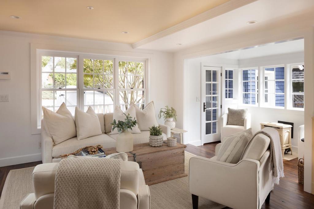 Welcome to Sea Spray, a quintessential Carmel-by-the-Sea home that exudes character and beauty throughout. Located on a quiet street a mere six blocks from the heart of the village. The residence offers three bedrooms, each with an en-suite full bathroom, plus a powder room conveniently located off the kitchen. High ceilings and abundant windows fill the interiors with natural light. An elevated side deck is a wonderful venue to enjoy the afternoon sun, while the backyard centers around a majestic sequoia tree and Carmel Stone fireplace, perfect for evenings outdoors in good company. Meticulously cared for by long-time owners with recent upgrades including refinished hardwood floors, fresh interior and exterior paint, new furnace, new landscaping, and an epoxy-finished garage floor. Fully fenced and gated, the property is situated just a short walk to town.
