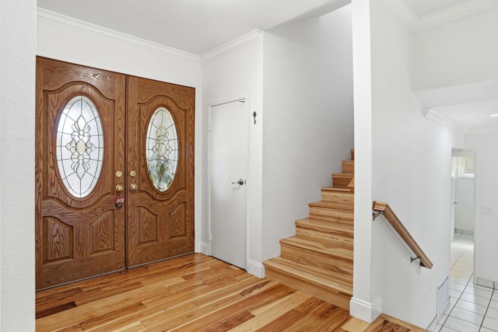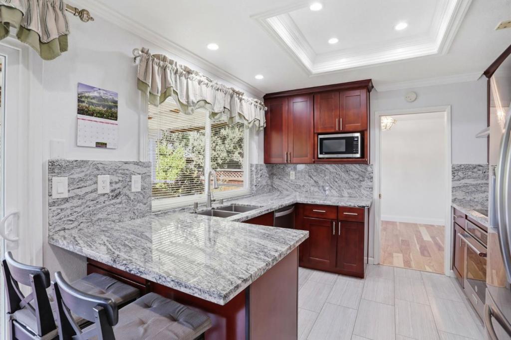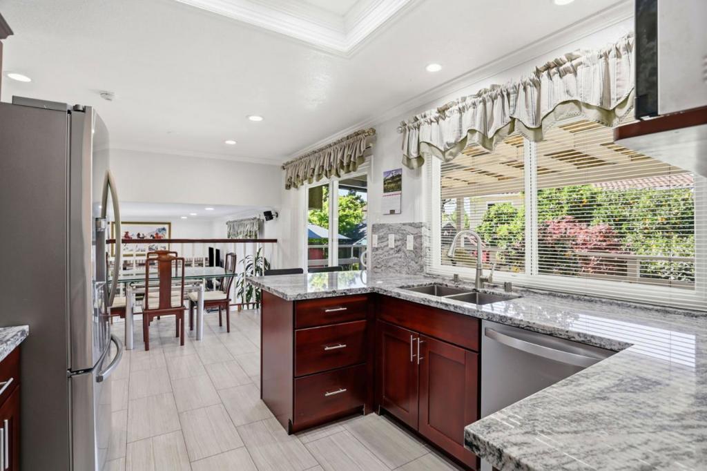 Discover this spacious 4-bedroom, 2.5 bathroom tri-level home in the vibrant city of San Jose. With a generous 2,124 square feet of living space, this property offers ample room for family living and entertaining. The heart of the home is the well-appointed kitchen, ideal for culinary enthusiasts. Enjoy meals in the formal dining room or unwind in the separate family room. The home features a mix of hardwood, laminate, and tile flooring, offering both style and durability. Newer dual pane windows & remodeled bathrooms. Stay cozy during cooler months with central forced air heating and a charming fireplace that adds warmth and ambiance to the living space. The convenience of an in-utility-room laundry setup enhances everyday living. The property includes a two-car garage and an existing sheds for additional storage needs. Gorgeous backyard with plenty of matured fruit trees. Situated within the Berryessa Union Elementary School District, this home provides a functional layout and essential amenities, making it a practical choice for families seeking a comfortable lifestyle in San Jose. Easy access to freeways & shopping.
