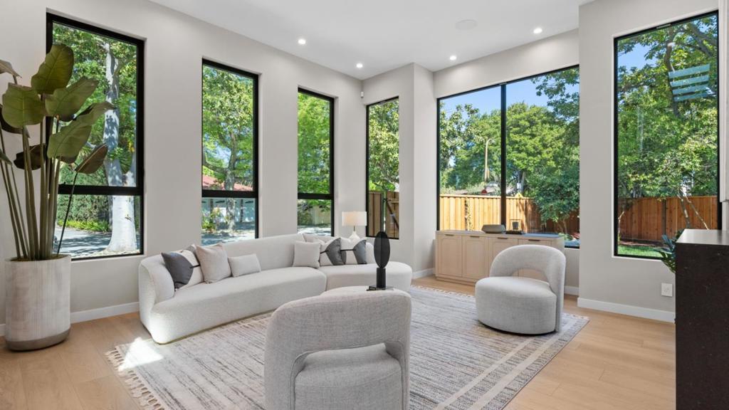 Welcome to this stunning modern estate, an architectural gem offering 5213 sq ft ( including one car garage) of luxurious living space on a over 9,000 sq ft lot in one of the most prestigious neighborhoods home to top tech executives and multi-million-dollar estates. This residence epitomizes elegance, sophistication, and comfort. Inside, soaring ceilings and oversized windows fill the space with natural light, creating an airy, open feel. The floor plan features 5 spacious bedrooms, ideal for family living and guests. Enjoy both a Wet Kitchen for heavy cooking and a Dry Kitchen for social gatherings. Relax in the private sauna, work out in the home gym, or unwind in the state-of-the-art theater. The sleek kitchen is outfitted with Miele appliances, seamless cabinetry, and premium finishes. The low-maintenance backyard is beautifully landscaped, perfect for busy professionals. Smart home technology, energy-efficient features, and designer lighting complete this rare offering. Located near elite schools, fine dining, and boutique shopping, this home delivers the ultimate blend of modern living and timeless elegance in a truly coveted location.