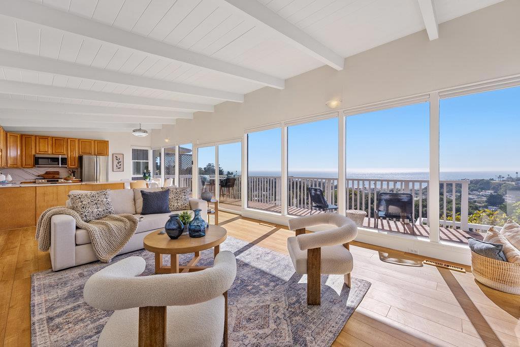 Coastal luxury with unparalleled ocean views at 220 Shoreview Drive, an extraordinary Aptos retreat where unobstructed Monterey Bay views define your lifestyle. Just steps from Rio Del Mar beach, this 4-bedroom, 2-bathroom, 2450 sq ft haven blends elegance with the allure of the sea. Savor panoramic vistas from the sunlit deck or through expansive windows in the open-concept living area. The brand-new Chefs kitchen, featuring Cambria quartz countertops and stainless-steel appliances, overlooks the ocean and flows seamlessly into dining and living areas warmed by a marble fireplace. A versatile floorplan offers potential for a separate downstairs unit, ideal for guests or rental income. Enjoy proximity to Seacliff Beach, Pleasure Point's surf breaks, and popular local restaurants. 220 Shoreview Drive isn't just a home, it is a lifestyle defined by the Pacific. Schedule your private tour today.