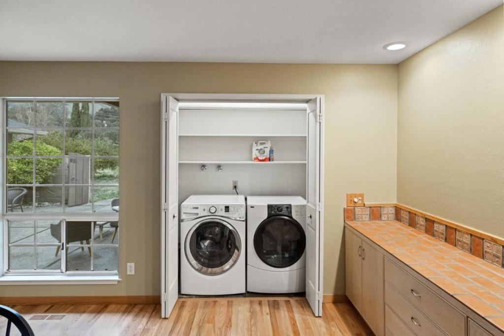 Welcome to this spacious 4-bedroom, 2-bathroom home nestled in the beautiful city of Carmel Valley. This property boasts a generous 2,274 square feet of living space on a one-acre lot. The kitchen is equipped with modern amenities including a dishwasher, garbage disposal, and a convenient pantry, making meal prep a breeze. Enjoy the luxury of hardwood and stone flooring throughout the home, adding both elegance and durability. The family room, separate from the dining area, offers a cozy space for gatherings and relaxation. Warm up by the fireplace on cooler evenings, creating a welcoming atmosphere for you and your guests. The home features more than one bedroom on the ground floor, with a walk-in closet adding extra storage convenience. For your climate comfort, the house is equipped with central AC and ceiling fans. The laundry area is conveniently located inside, complete with a washer and dryer. This property falls within the Carmel Unified School District. Don't miss the opportunity to make this Carmel Valley gem your own!