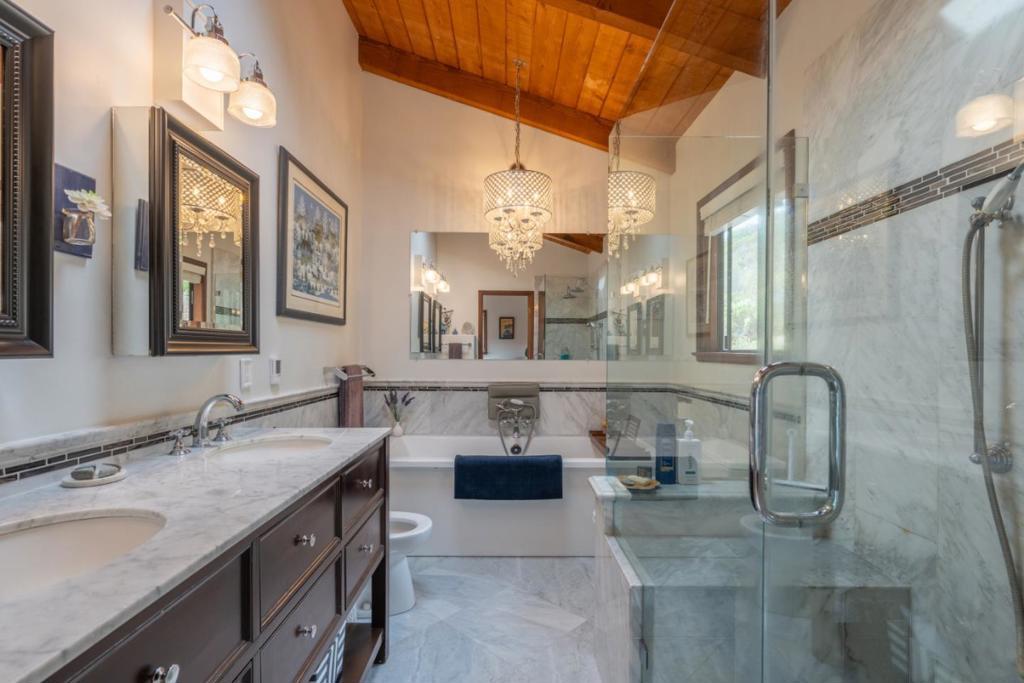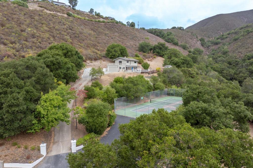 Privacy, Views & Luxury in Carmel Valley Breathtaking, expansive Valley views greet you from nearly every room of this 1,440 square foot home. Set on 7 private acres in a gated community, the 2-bedroom, 2.5-bath layout is thoughtfully designed, with the option to easily add a third bedroom. Vaulted ceilings and Acacia wood floors create a warm, open feel, while a cozy wood stove adds charm and comfort. The spacious, modern kitchen features granite counters, a large island, gas range, built-in oven, wine refrigerator, and a sunny eating area that feels like dining outdoors. Each bedroom is a private suite, with the primary retreat offering a sitting area, personal coffee bar, and a spa-like bathroom with soaking tub, oversized shower, radiant-floor heating, and Italian Carrera marble. Multiple decks and patios, a hot tub, and generous space for gardens or play make outdoor living a delight, all framed by the stunning Valley views. Located minutes from Garland Ranch Regional Park and Carmel Valley Village, this home blends privacy, comfort, and the best of Carmel Valley living. Located in Water West-Water credits available.