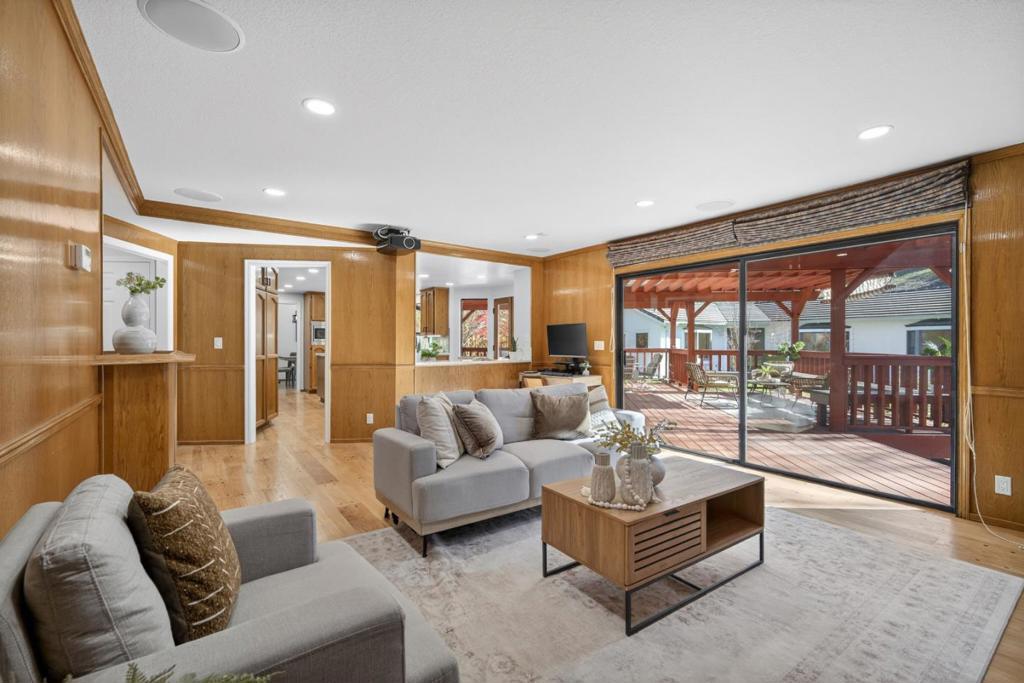 COME SEE ALL THE NEW UPDATES! This spectacular home on an expansive 18,000 SqFt premium lot in Glencrest Estates, one of Almaden's most desirable areas.The home offers 3,202 SqFt of living space. Freshly painted interior throughout. This home Includes 4 beds, 3 baths, spacious living room w/fireplace, and a formal dining area. The eat-in kitchen boasts SS appliances, an island, premier six-burner Viking gas cook top w/griddle & 2 ovens. Separate family room has a wet bar, fireplace, drop-down projection screen, & surround sound, creating an ideal environment for relaxation. Main level has a bedroom, full bathroom, & indoor laundry room. The upstairs X-Large en-suite features a walk-in closet, private balcony. The en-suite bath offers 2 sinks, jetted tub, stall shower, & private WC. Upstairs has 2 add'l bedrooms, full bath, & large family room/den w/ fireplace.The beautifully landscaped backyard has a large deck with built-in seating ideal for outdoor entertainment. Detached permitted 1100 SqFt hobby house w/ 1/2 bath, baseboard heating, A/C, water/electrical is ideal for an ADU conversion, Other amenities include dual-zone controls, whole-home fan, dual pane windows, sprinkler system, 3-car garage, and RV parking. Community Pool!