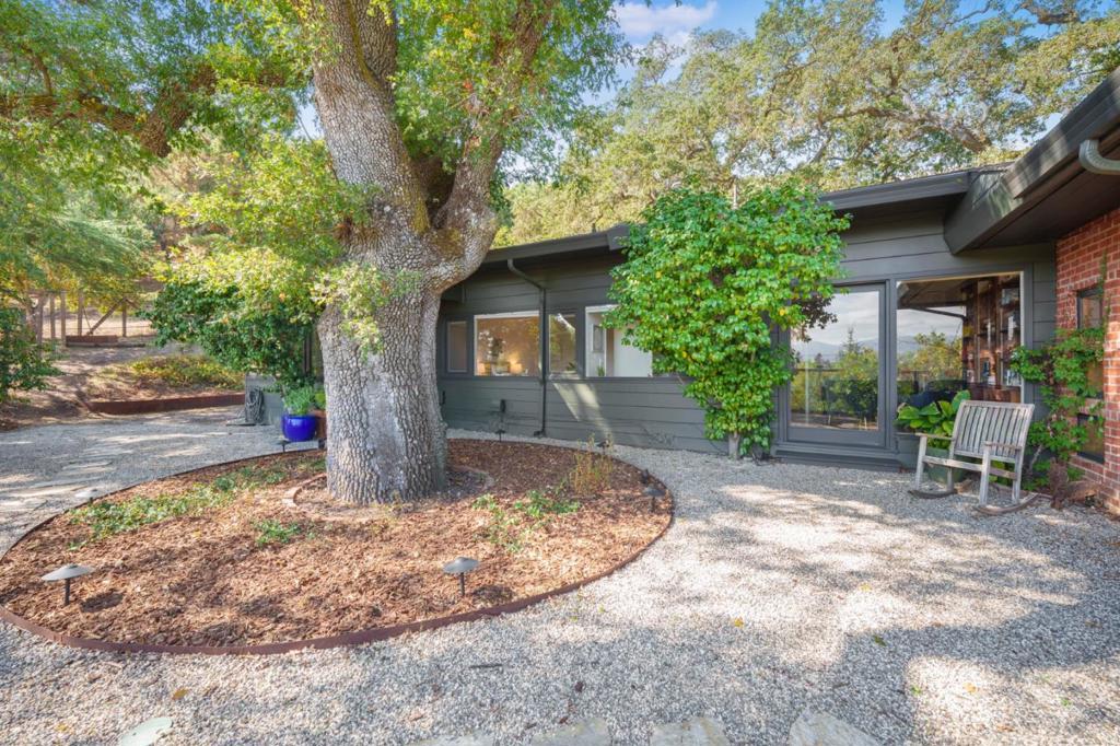 Nestled among majestic 300-year-old oak trees, this Frank Lloyd Wright-style estate is a rare blend of architectural mastery and natural beauty. Designed for seamless indoor-outdoor living, the mostly single-level layout invites you through a Zen-style entry into a tranquil sanctuary with city views. Floor-to-ceiling windows flood the interiors with natural light, highlighting hardwood floors and exquisite craftsmanship throughout. The spacious family room, anchored by a striking fireplace, offers the perfect setting for intimate gatherings or quiet reflection. Thoughtfully updated bathrooms and kitchen, refined finishes bring modern comfort to this timeless design. Set on two parcels totaling approximately 1.54 acres, the property provides unparalleled privacy amid breathtaking surroundings. A new roof, fresh exterior paint, and security system complement the home's impeccable condition. Complete with a two-car garage and serene outdoor spaces shaded by oak trees, this one-of-a-kind residence embodies elegance, tranquility, and enduring architectural grace.
