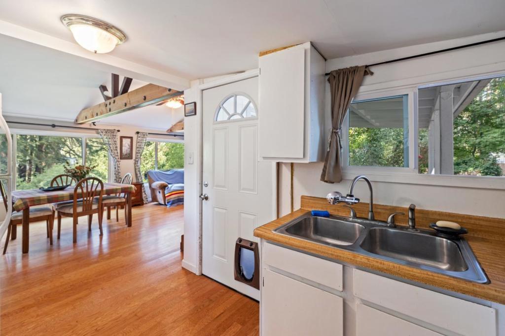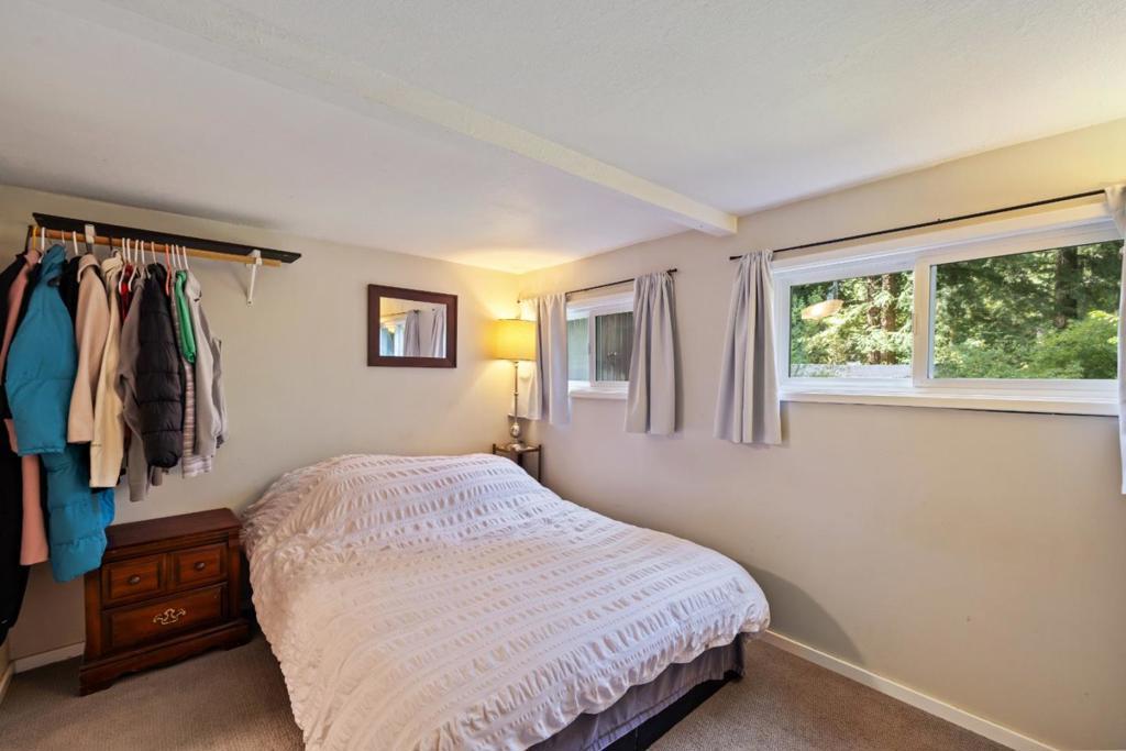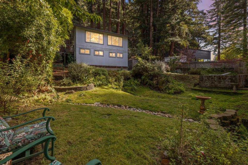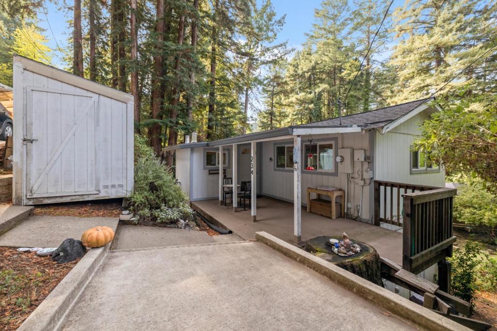 Sunlit sanctuary meets mountain magic! This charming 1950's built cabin welcomes you with vaulted beam ceilings, genuine hardwood floors that glow in the natural light, and a park-like backyard framed by towering redwoods. Start your days on the covered front porch while the open living-dining flow invites cozy evenings and easy entertaining. Generous spaces invite you to move freely and soak in the peaceful mountain energy that surrounds you. A reverse floor plan offers convenient living with good sized bedrooms & an inside laundry room with extra storage! Watch the local wildlife make their daily stops in the flat rear yard- complete with fruit trees, mature gardens, and even hardscaping / drainage to take on those winter mountain storms. The frame of an old koi pond awaits for you to bring it back to its former glory (or can be turned into a shed, or maybe even a wine cellar?) This is a rare chance to own in Santa Cruz County without the usual sticker shock. Minutes to hiking trails, a quick shot to the beach, and nestled on a wide, easy to navigate dead end street. No crazy windy roads here! Easy commute to both Santa Cruz and the Bay Area. This home is truly ready for you to make it yours.