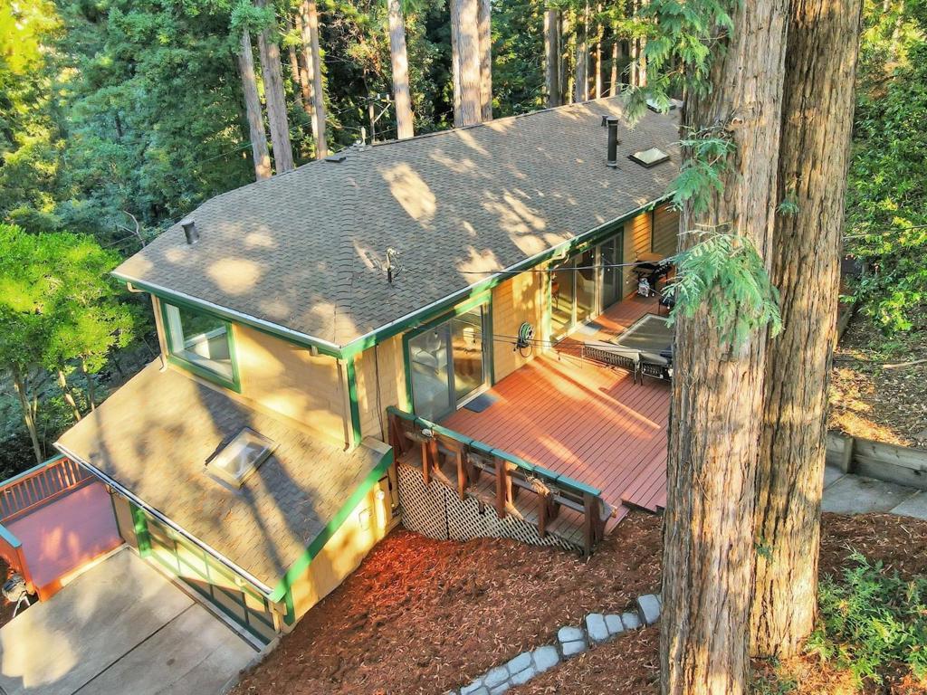 Tucked away in a quiet valley and embraced by towering redwoods, this inviting mountain home is the ideal getaway for those craving serenity and a close connection to nature. Designed to harmonize with its surroundings, the home features soaring ceilings, expansive windows, and sliding glass doors that flood the space with natural light and forest views. Perfect for indoor-outdoor living and entertaining, the open-concept layout flows easily onto a private patio, ideal for grilling, relaxing, or gathering with friends. In the heart of the home, the kitchen and dining area are warm and welcoming, with plenty of space for hosting. The bedrooms are generously sized, with the primary suite offering a luxurious ensuite, built-in closet, and a private deck tucked into the trees. Above the bedrooms, cozy loft-style nooks provide the perfect hideaway for reading, play, or quiet retreat. A flexible fourth bedroom is currently outfitted as a home gym, ideal for fitness, a hobby room, or a home office. A spacious workshop with plenty storage space, and the attached two-car garage adds even more functionality. Whether you're seeking a full-time residence or a peaceful weekend escape, this redwood valley retreat offers the perfect blend of comfort, natural beauty, and laid-back living.
