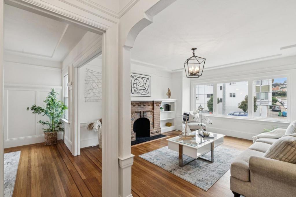 Timeless San Francisco architecture meets modern comfort at 1849 San Jose Avenue. This beautifully maintained home sits on an oversized lot with convenient access from the rear alley, offering exceptional versatility and expansion potential. Inside, classic period details shine through with elegant crown molding, tall baseboards, a brick wood-burning fireplace with an oversized mantel, and rich trim work. Natural light fills each room through large windows, enhancing the warmth of the gleaming floors and cozy fireplace. The dining room showcases charming built-ins and sconce lighting, while the kitchen blends original character with modern updates and a kitchen nook overlooking the yard. High ceilings, thoughtful craftsmanship, and a seamless flow create an inviting sense of space throughout. Perfectly positioned near the Glen Park and Mission corridors, this home offers easy access to BART, local cafes, and neighborhood conveniences. The oversized yard, spacious laundry area, and deep garage provide ample room for storage, easy expansion, and future ADU potential.