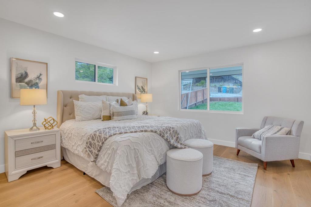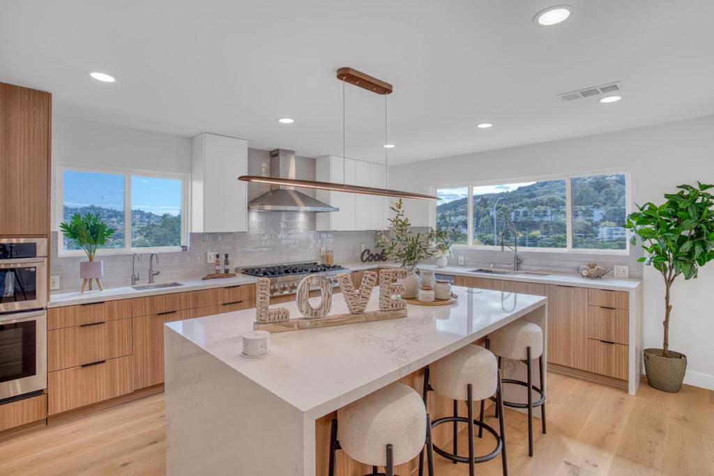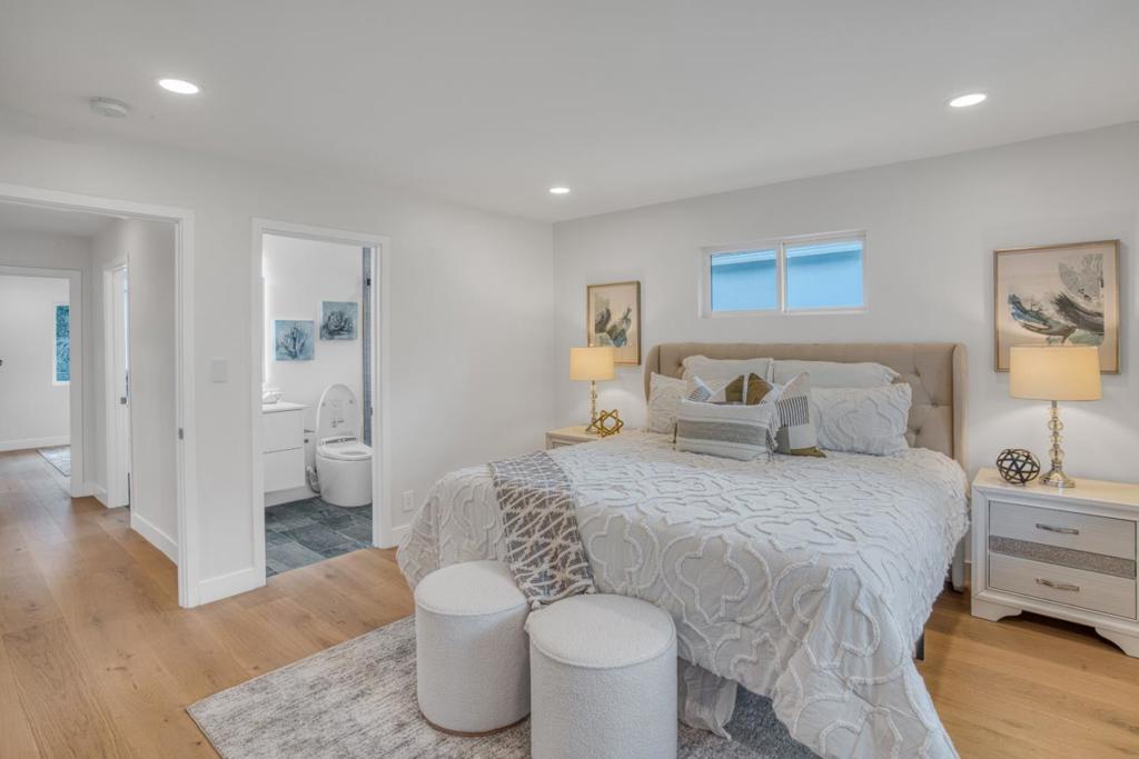 Newly remodeled in 2025, this beautifully upgraded 4-bedroom, 3-bathroom home combines modern luxury, smart living, and a flexible layout. Located within a top-rated school district, it offers the perfect blend of comfort and convenience. The main level features 2 bedrooms and 2 bathrooms, including a chefs kitchen with quartz countertops, a dramatic waterfall island, smart appliances, and elegant under-cabinet ambient lighting. Sun-drenched living areas are enhanced by motorized smart blinds and sleek, high-end finishes throughout. The lower level includes additional flexible living space with a custom water bar, a spacious family room, and a luxurious master suite--making it ideal for multi-generational living, guests, or a private retreat. Step outside to a rare, oversized deck, perfect for outdoor dining, BBQs, or simply enjoying the peaceful outdoor setting--an exceptional feature in this neighborhood. Smart, stylish, and move-in ready, this is a rare opportunity to own a fully upgraded home in one of the Peninsulas most sought-after locations.