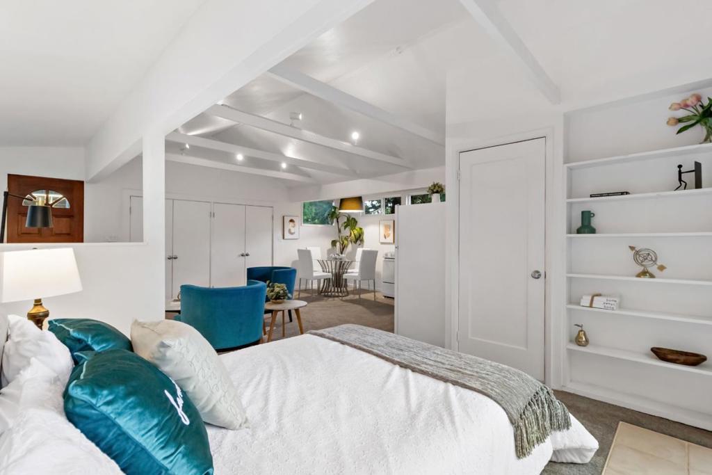 Discover the perfect blend of nature and modern convenience at 1019 Los Trancos Road in the peaceful Los Trancos Woods neighborhood. This charming home, built in 1930, offers 1,770 SF of versatile living space (per the Seller) in two buildings with freshly painted exteriors. The 1,225 SF main house features three bedrooms and two baths, with vaulted ceilings and skylights that invite abundant natural light. The airy living room, featuring exposed beams, seamlessly transitions to a large deck and patio, ideal for indoor-outdoor entertainment. The galley kitchen is a chef's delight, featuring stainless steel appliances and ample cabinetry that overlooks the garden. A 545 SF studio is situated behind the one-car garage. While not reflected in the County records, the studio is a flexible space with a kitchen, stacked washer/dryer, full bathroom, new wall-to-wall carpeting, and a private deck - ideal for multi-generational living, working from home, or generating rental income. Positioned on a generous 9,360 SF parcel, you'll enjoy peaceful views and easy access to Portola Valley's lively Town Center and Highway 280 for easy commuting.