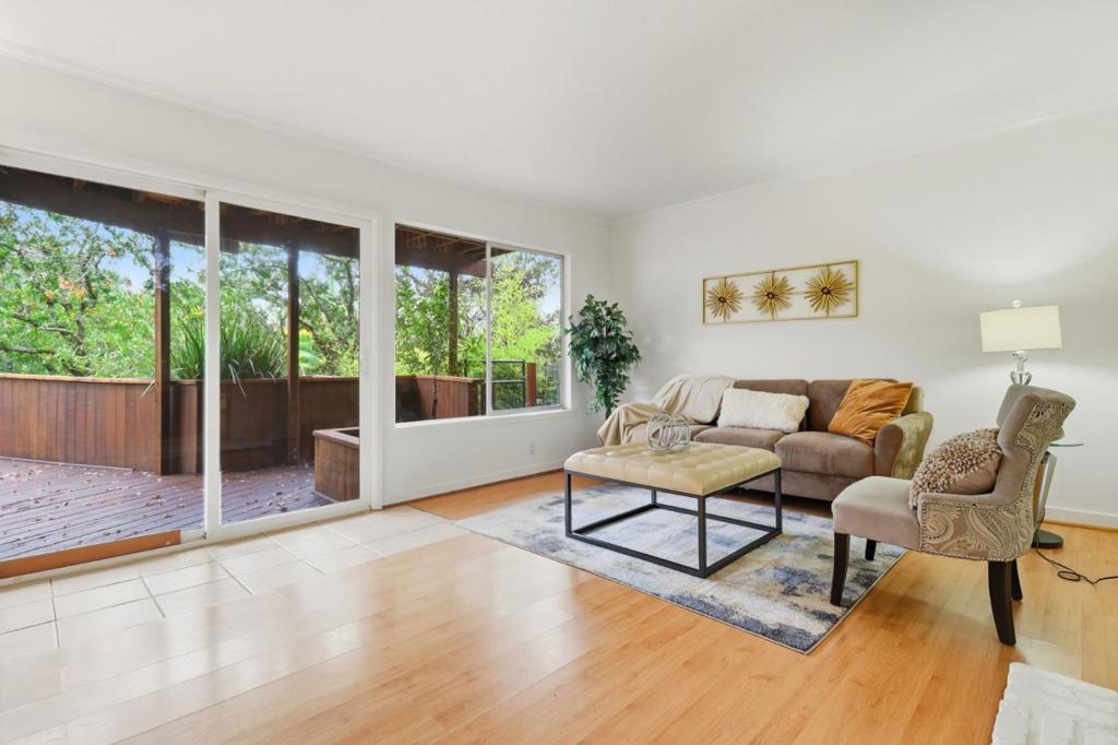 Nestled in the heart of nature, this enchanting 3-bedroom, 2-bathroom home offers the perfect blend of tranquility and modern comfort. Surrounded by expansive decks and lush greenery, its a true sanctuary for those seeking peace, privacy, and a connection to the outdoors. Step inside to discover a beautifully refreshed kitchen, gleaming hardwood floors, and an abundance of natural light pouring in through large windows and sliding glass doors. The open layout creates a seamless flow between indoor and outdoor living, ideal for entertaining or simply soaking in the serene views. Downstairs, a versatile space awaits, complete with its own bedroom, bathroom, kitchenette, and private entrance. Whether used as a guest suite, home office, or bonus room, this area offers endless possibilities. Enjoy morning coffee or evening wine on the beautiful deck with stunning views of Mt. Tam and surrounded by towering trees and birdsong. Highly desirable neighborhood, quiet, family friendly and with excellent schools! This home is more than just a place to live, it's a peaceful escape, a cozy haven, and a rare opportunity to embrace the beauty of San Anselmo's woodsy charm.