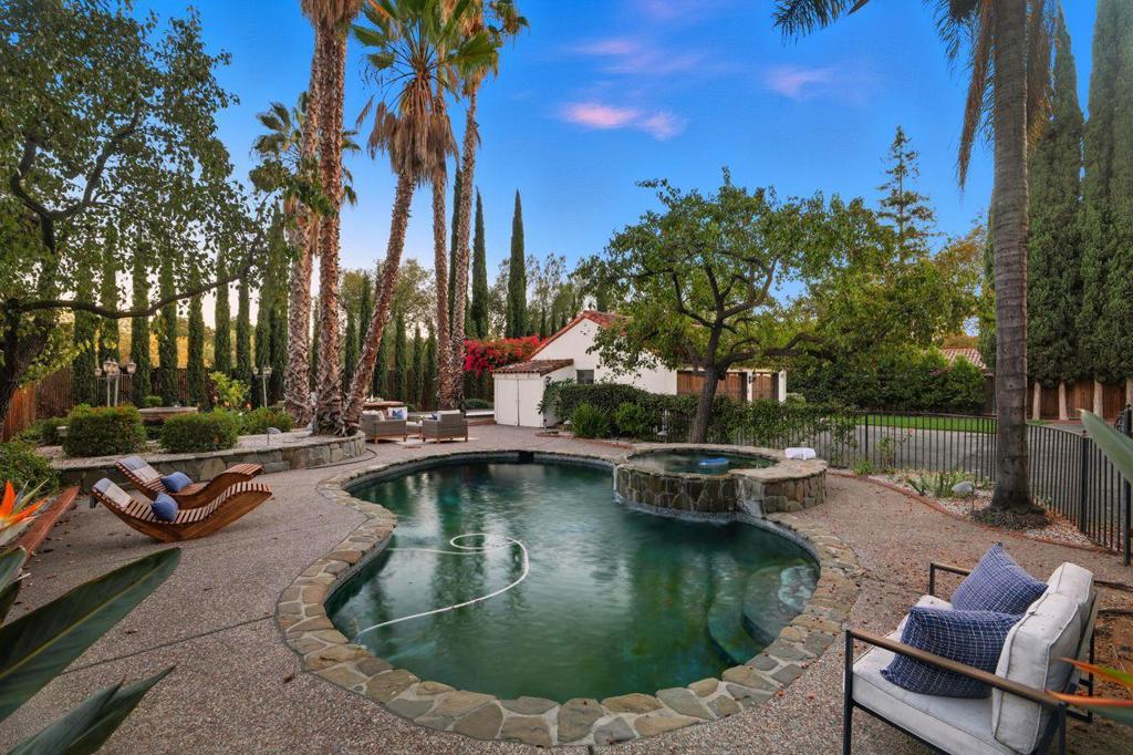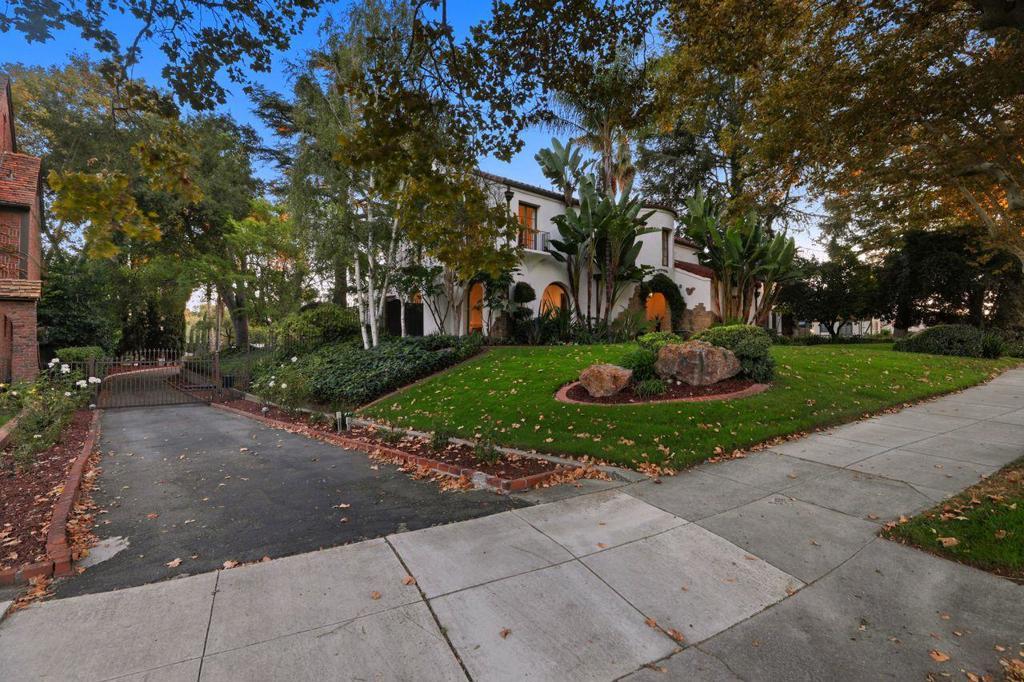 Welcome to this exceptional 1928 Spanish Hacienda style estate, an architectural gem in San Joses prestigious Naglee Park. Gated and private, this 4BD/3BA residence offers 3,901 sq. ft. of refined living on nearly 2/3 acre of landscaped grounds. Inside, Old-World craftsmanship blends seamlessly with modern updates. A dramatic mahogany foyer opens to a sun-filled formal living room with grand fireplace ideal for entertaining. The open chef's kitchen features new stone countertops, designer tile, Sub-Zero refrigerator, and Bertazzoni appliances including double ovens and a 5-burner cooktop, plus a sous prep area. The upper-level primary suite is a private retreat with fireplace, Juliet balcony, and flexible sitting/office area. The remodeled ensuite boasts dual vanities, custom shower, and generous walk-in closet. A finished 400 sq. ft. basement adds versatility with kitchenette, wine cellar, and walk-out access to the stunning yard. Outdoors, enjoy a resort-style setting with flagstone patios, pool/spa, bocce court, alfresco kitchen, terraced lawns, rose garden, raised beds, and children's play area. Three-car garage plus space for pool house or ADU. Prime location minutes from Downtown San Jose, with easy access to 280/680/101/87 and top employers like Adobe, Google, and Zoom.