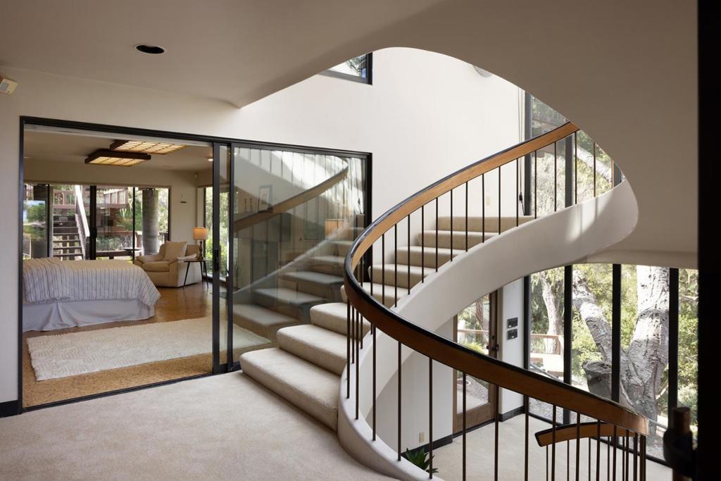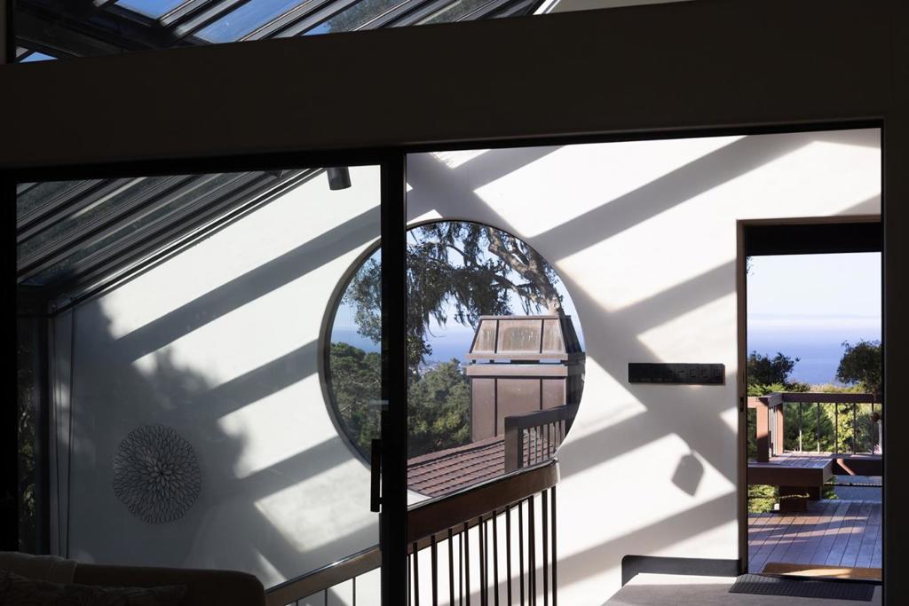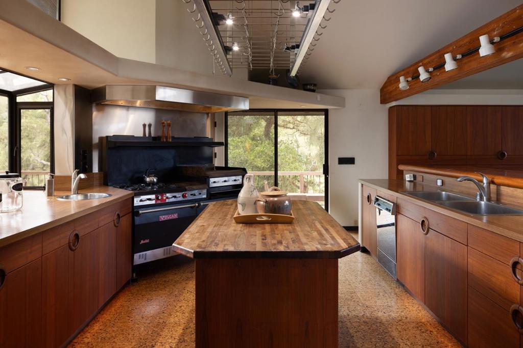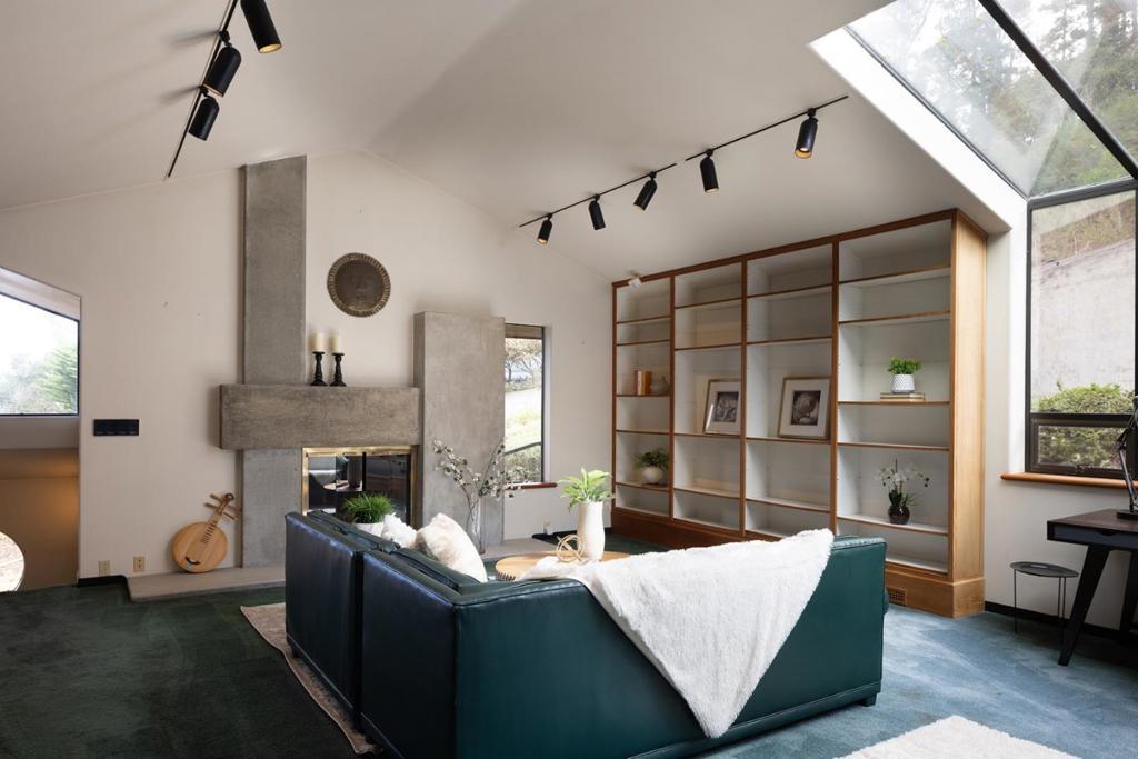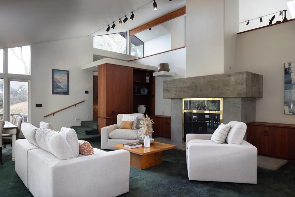 Designed by local acclaimed architect Olof Dahlstrand, this architectural gem blends timeless design with the tranquility of its five-acre Carmel setting. Crafted in redwood and teak, the ~5,777 sq. ft. residence frames sweeping views of Monterey Bay and the surrounding forest through walls of glass and expansive decks. Inside, warm textures and fine materials define every space, including five sculptural concrete fireplaces and custom built-ins throughout. Perfect for entertaining, the home features multiple living areas, including a library and family room, and two full kitchens; one with a commercial-grade Vulcan range and dual Traulsen refrigerators. Four ensuite bedrooms each open to private patios, while the primary suite offers its own fireplace and kitchenette. Additional amenities include a sauna, two laundry rooms, an artist studio with water, and a detached four-car garage. Centrally located within a few minutes' drive into downtown Carmel, Monterey, and all the incredible amenities the Peninsula has to offer, this rare architectural retreat is a place where design, nature, and light exist in perfect harmony.