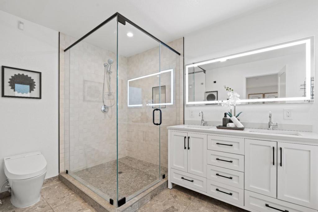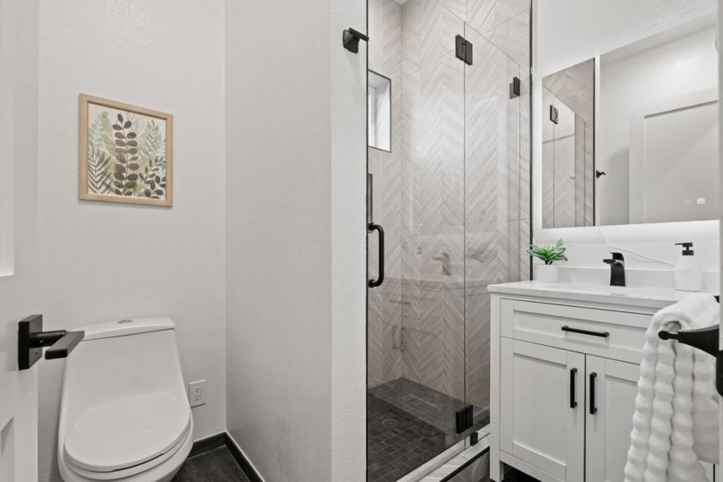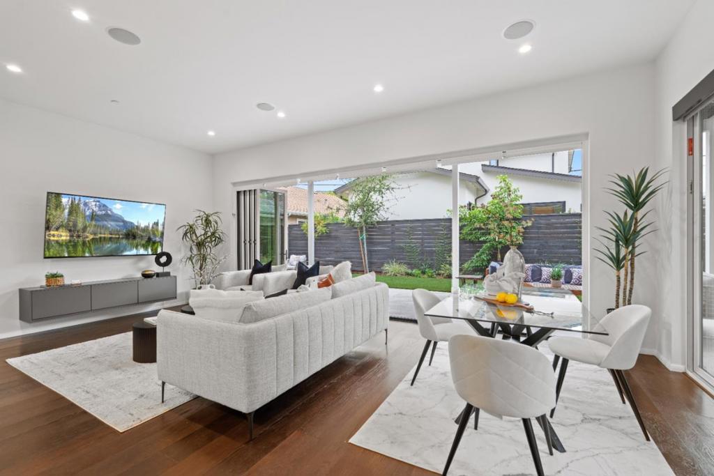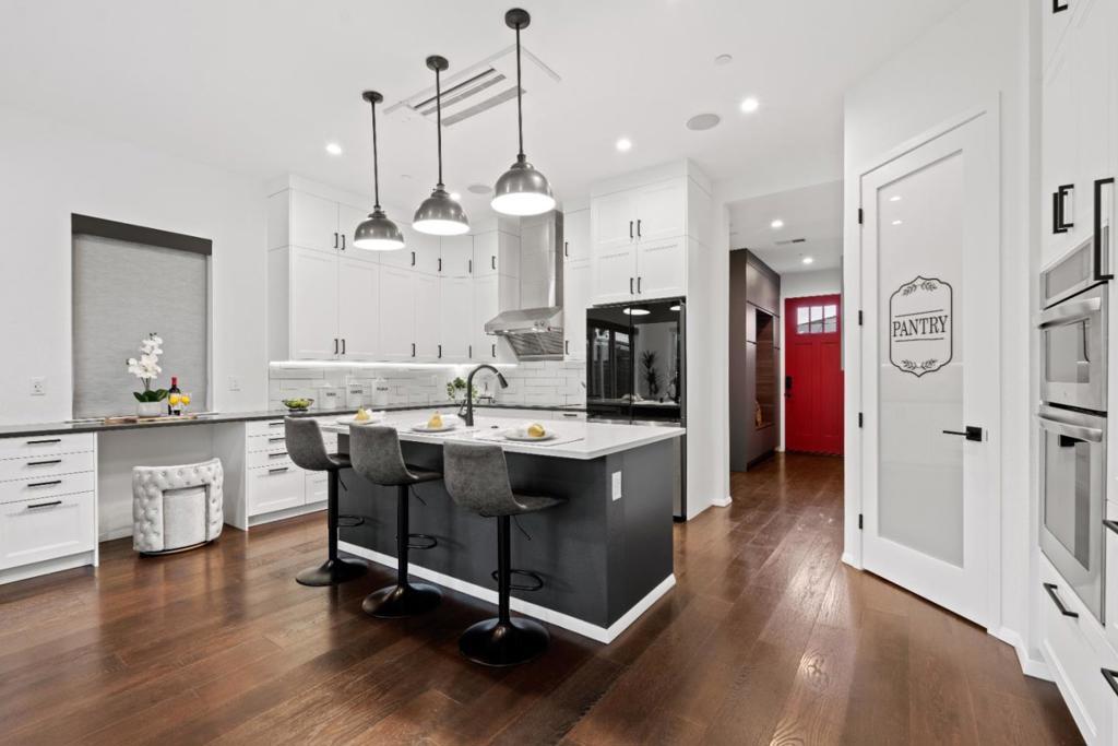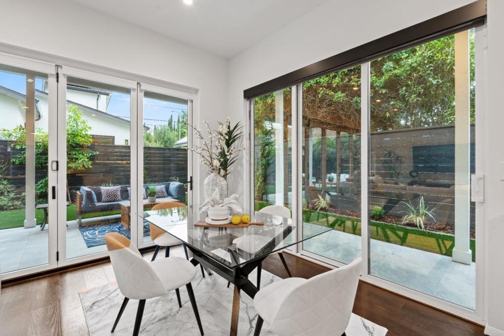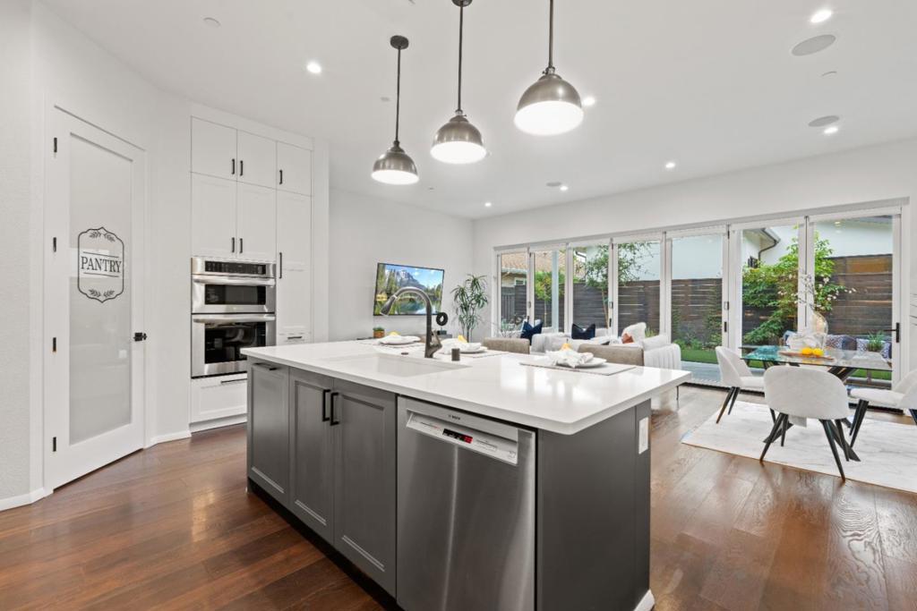 This 4-year new modern 4 bedroom, 3 bathroom Campbell home blends high-end design with everyday comfort & offers 1,872 sq. ft. of open, light-filled living space with premium finishes throughout. The grand great room encompasses a chefs kitchen with an island, breakfast bar, professional stainless-steel appliances, custom cabinetry, under-cabinet lighting & a walk-in pantry. Seamless flow between the kitchen, dining & living area, as well as La Cantina multi-slide doors opening an entire wall out to an expansive covered patio, makes entertaining effortless. Upstairs the spacious primary suite includes a spa-like bath with dual sinks, large shower & soaking tub. The 2nd level also has 2 more bedrooms that share a hall bath. Downstairs find another bedroom & full bath. Plentiful amenities include wine closet, sauna, wide-plank hardwood floors, owned solar system, 2 car chargers, water-wise landscaping, & attached 235 sq. ft. gym (not included in total sq.ft.). Ideally situated walking distance to Downtown Campbell, the farmers market, shopping & dining at the Pruneyard, multiple parks, the library & top private schools including St. Lucies, Canyon Heights & Old Orchard Academies. This nearly new home offers luxury, style & convenience all in one.