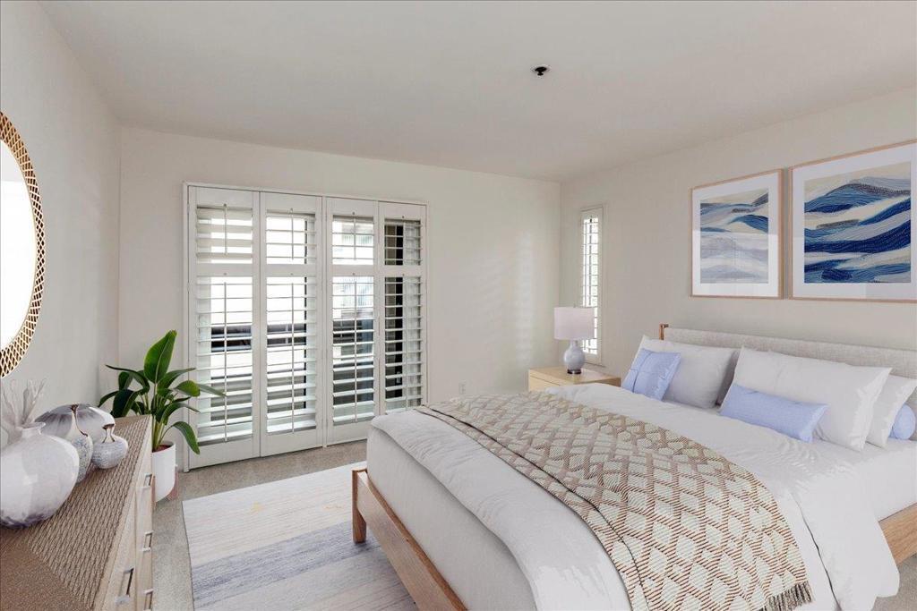 Lovely 2 bedroom/2 bath condo in Palo Alto. Located at the back of the building which means lots of light, no train or El Camino noise, just quiet! Ready for new owners. Property has had a "Facelift" with no old wrinkles to be found. No popcorn ceilings, custom baseboards, spectacular custom closet doors, dedicated parking, secure building, pool/spa and storage unit next to the unit. Two blocks from great cafes, restaurants, shopping on California Ave, Molly Stones grocery store + Farmers Market. All four board members live at the property-a definite plus and a well-run HOA. Close to Stanford, shuttle on the corner of El Camino takes you to Stanford Shopping Center. A couple blocks from Caltrain, easy access to commute routes to points of the Bay Area!