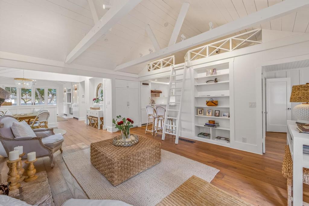 Nestled in the Golden Rectangle and just a short stroll from Carmel Beach, this coastal cottage has been thoughtfully reimagined to blend classic Carmel character with upscale modern living. Step inside to discover a light-filled living space anchored by a rustic stone fireplace, creating the perfect setting for cozy evenings or relaxed entertaining. The stylish, updated kitchen flows seamlessly into the open living area, while a charming loft above adds a whimsical touch, ideal as a reading nook, creative space, or guest area. The private primary suite offers a peaceful retreat with a spacious walk-in closet, while a beautifully appointed guest suite ensures comfort for visitors. A third bedroom, paired with a convenient half bath, is perfectly suited for a home office or additional overnight guests. Every corner of this home is enhanced with custom finishes and details that elevate its sense of luxury. Enjoy ocean glimpses from the balcony or unwind in the lush, landscaped backyard, an ideal setting for alfresco dining or entertaining. This hidden gem is the perfect Carmel retreat, ideally situated to enjoy the best of Carmel-by-the-Sea's vibrant downtown and scenic coastline.