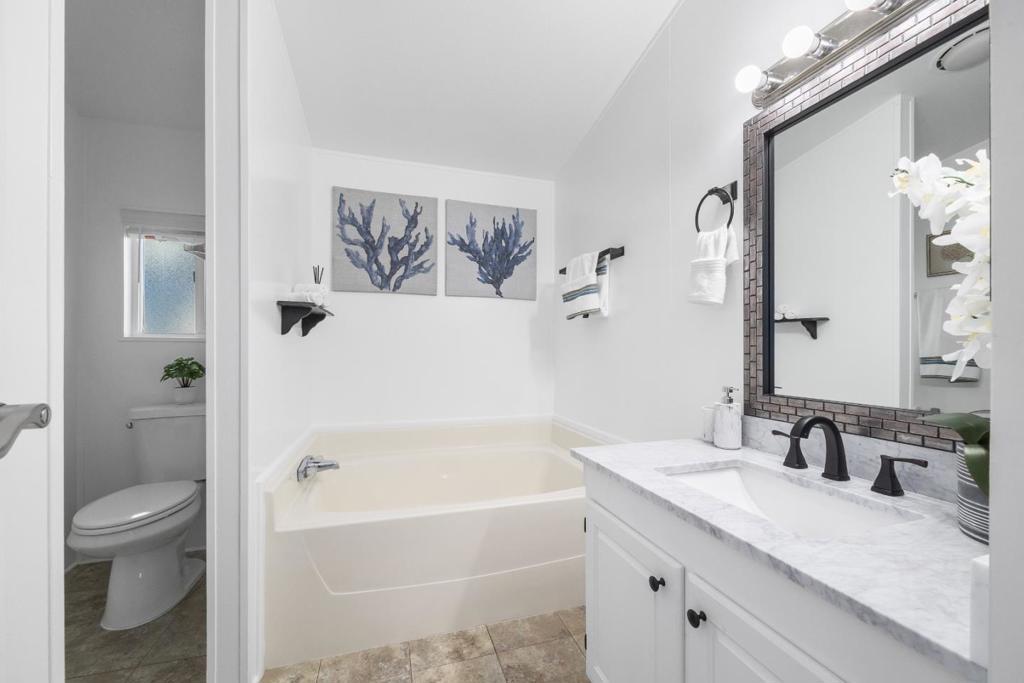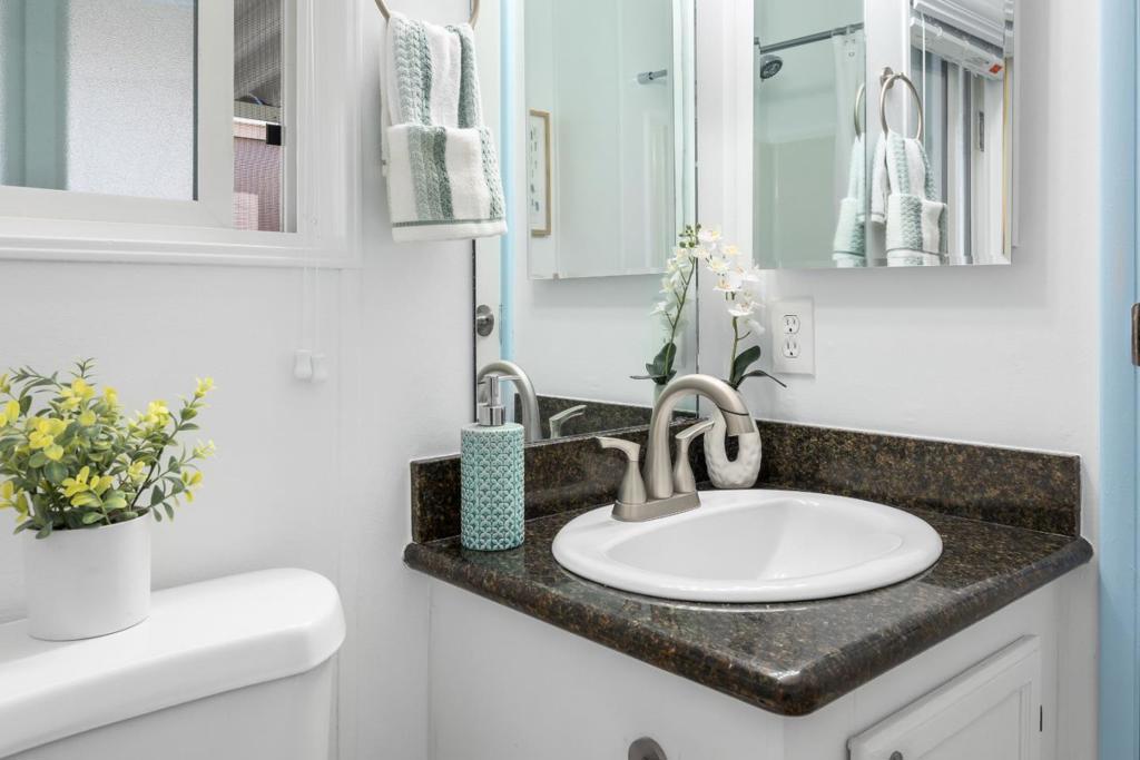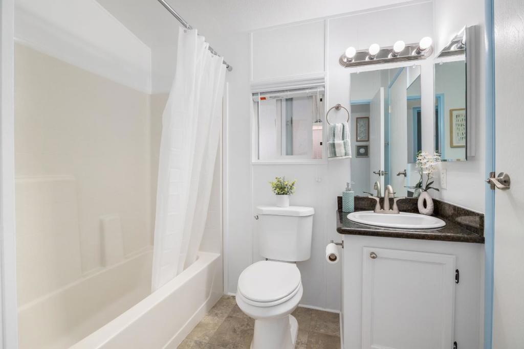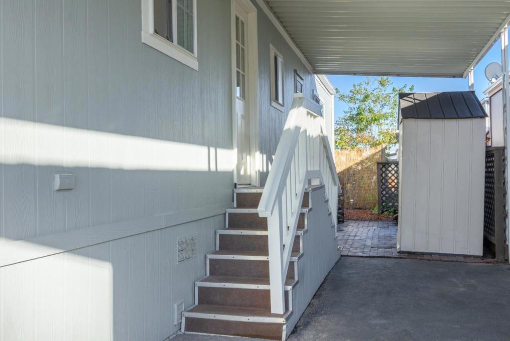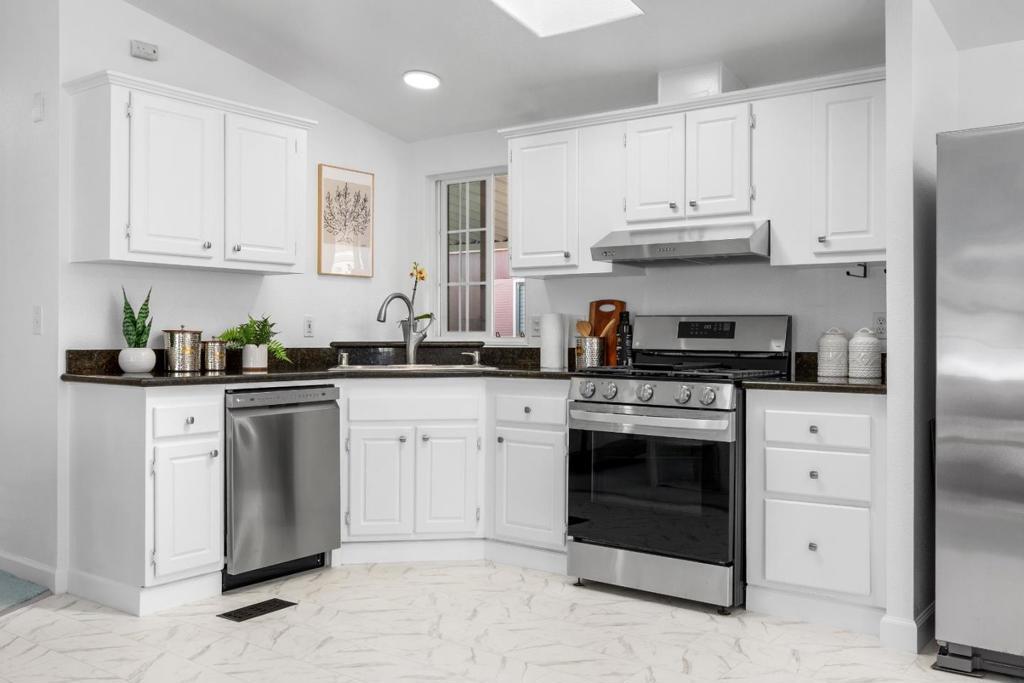 This home is in an ALL AGE rent controlled mobile home park that has been thoughtfully improved from top to bottom starting in 2024 with a brand-new roof, fresh interior paint, and new flooring throughout, giving it a clean, modern feel the moment you walk in. The seller opened up the kitchen to create better flow and openness, making the main living space feel larger, brighter, and more inviting. Vaulted ceilings and skylights bring in an abundance of natural light, enhancing the open floor plan and creating a warm, airy atmosphere. The kitchen is both stylish and functional, featuring granite countertops, stainless steel appliances, and plenty of storage, perfect for everyday living or entertaining. The primary suite offers a walk in closet and private bath, while two additional bedrooms provide flexibility for guests, a home office, or creative space. Outside, enjoy a low-maintenance yard ideal for relaxing, along with covered parking. Situated on leased land with LOW property taxes and LOW rent, this home offers an incredible opportunity to enjoy Santa Cruz living at a more accessible price point. Just minutes from beaches, parks, shopping, and all the local spots that make Santa Cruz so special, this move in ready home blends comfort, convenience, and coastal charm.