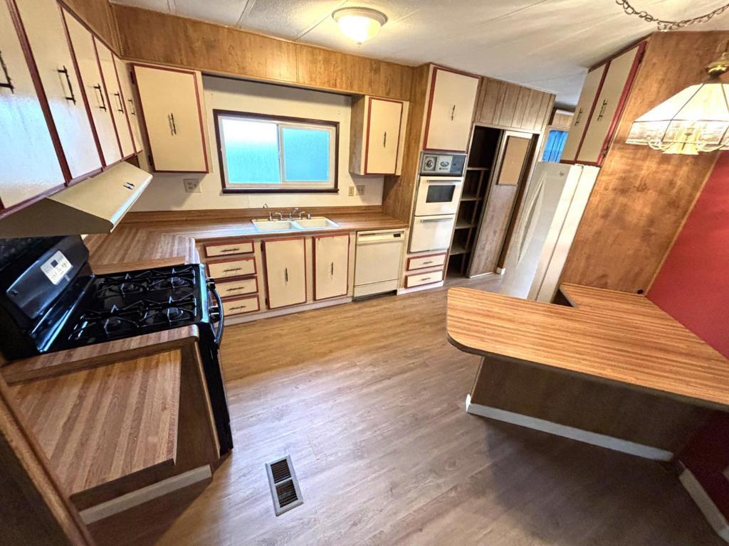 Discover this charming 1980 home in the Mountain View Community. This delightful residence spans approximately 1,440 sqft and features 2 bedrooms and 2 bathrooms. Upon entry, you'll immediately notice the new flooring that flows throughout the house. The kitchen is well-equipped with a refrigerator, stove, oven, dishwasher, cabinets, and a ceiling light. The master bedroom is spacious and includes a closet, while the master bathroom features a separate shower and tub, along with a new vanity mirror and vanity light. Enjoy the outdoors on the large covered patio. Stop by today!