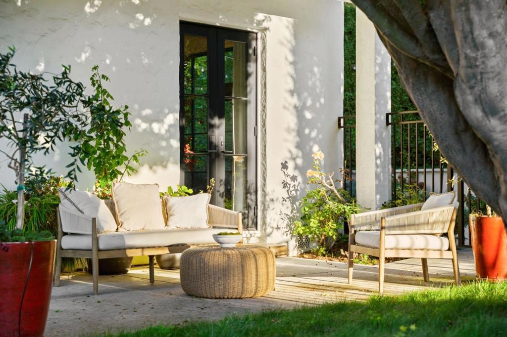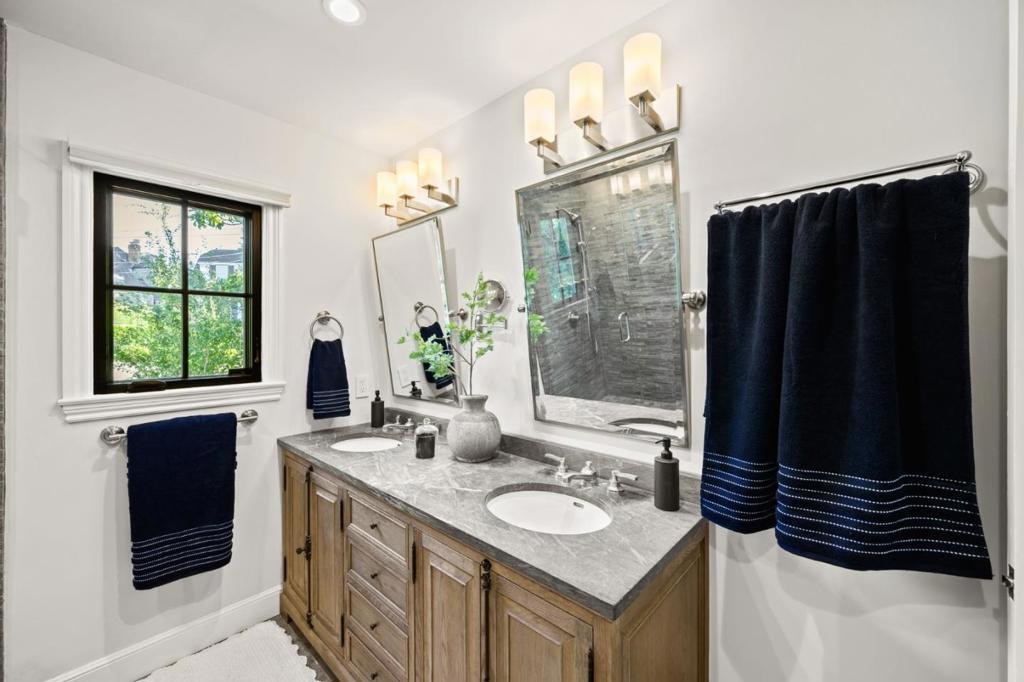 Just steps from downtown Burlingames charming boutiques & cafés, this timeless two-story Mediterranean in sought-after San Mateo Park captures the essence of California living. Graceful curves, a Spanish tile roof, & striking black steel doors create an unforgettable first impression, while mature trees and lush gardens wrap the home in privacy and calm. Inside, sunlight pours across beamed ceilings and herringbone hardwood floors, warming a grand living room centered around a marble fireplace. French doors open wide to a sunlit patioperfect for morning coffee or evenings with friends under the stars. The dining area flows naturally into a chefs kitchen where marble, brass, & custom cabinetry meet to inspire both everyday meals and lively gatherings. Two serene ensuite bedrooms, one with its own entrance, make guests feel instantly at home. Upstairs, the primary suite feels like a private retreat with balconies overlooking the gardens, a spa-like bath, and a spacious dressing room that invites slow mornings & quiet reflection. Outside, multiple patios, a fire pit, & manicured lawns invite laughter, conversation, and connection. Fragrant lavender and citrus fill the air as the sun setsevery detail crafted for comfort, beauty, and a life lived effortlessly both indoors and out.