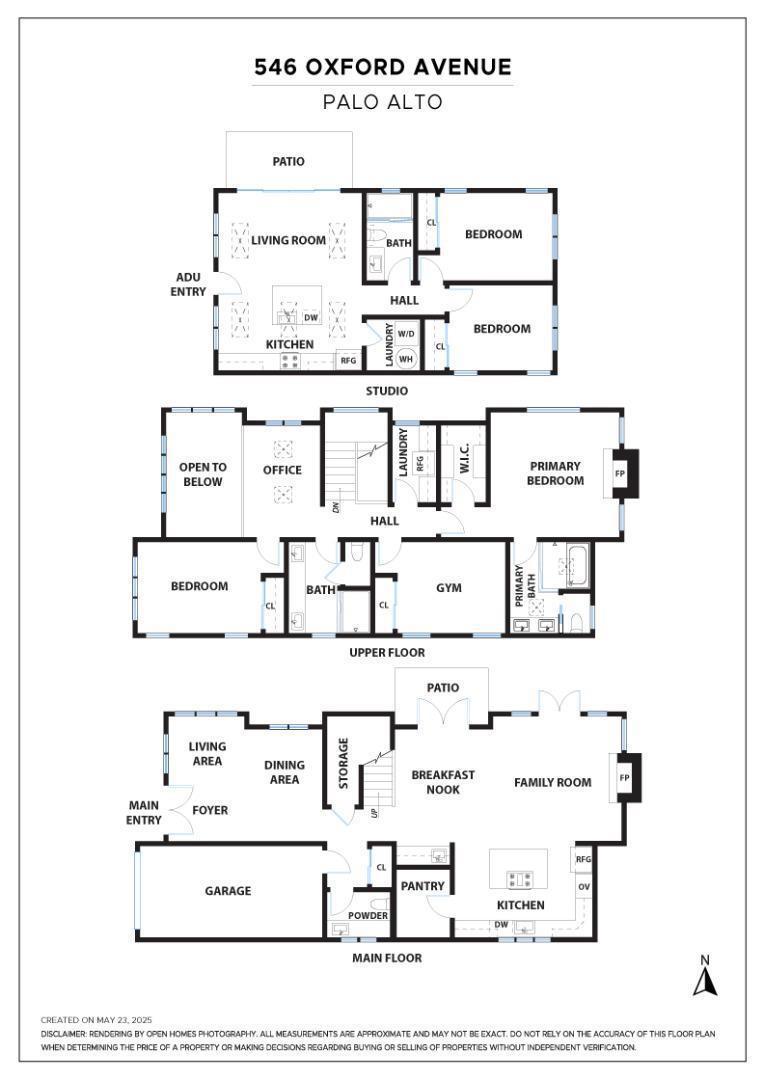 Urban Oasis by Stanford Dual-Residence Opportunity. Prime Palo Alto location just blocks from Stanford University and California Avenue. Convenient to shops, dining, parks, tech companies on Page Mill Road, and top-rated Palo Alto schools.Completed in March 2025, this new construction includes two dwellings on one lot totaling 3,427± sq. ft. The main residence (2,608 ± sq. ft.) offers 3 bedrooms and 2.5 baths with high ceilings, abundant skylights, and a kitchen featuring a quartz-stone island. Additional highlights include fireplaces in the family room and primary suite, a skylit primary bath, and a loft office.The detached ADU (819± sq.ft.) has its own address, 2 bedrooms, 1 bath, open kitchen with high ceilings and skylights, and a private fenced patio.Currently generating over $20,000/month in short-term rental income. Flexible use for multi-generational living, guesthouse, home office, or investment. Buyer to verify all information with the City.