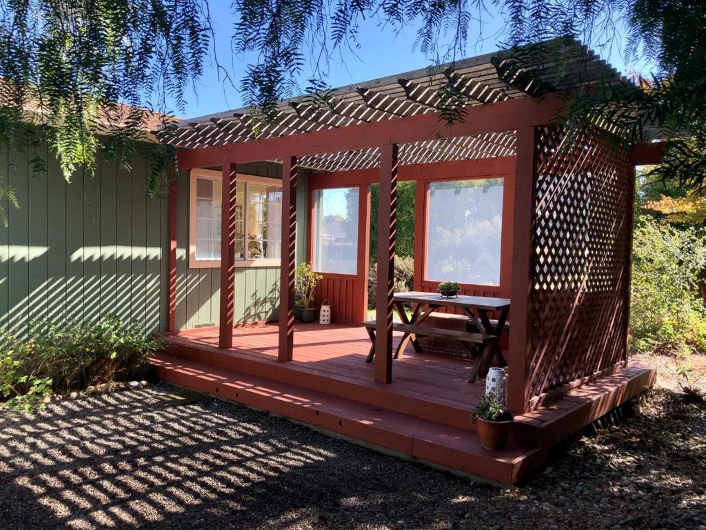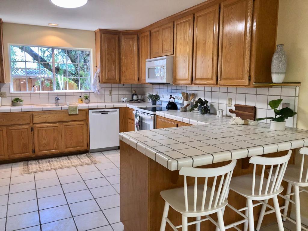 You'll love coming home to this sprawling single level home with its flowing floorplan. Spanning 1,980 sq ft, this residence offers spacious, inviting living spaces perfect for family fun and entertaining. The kitchen is equipped with newer appliances, ample cabinetry and counterspace making it a culinary haven for any home chef. The property boasts a Separate Family Room and a large dining area complemented by a breakfast bar, providing ample space for family gatherings and entertaining guests. The flooring is a combination of carpet and tile, adding warmth and style throughout the home. Cozy up by the fireplace during cooler evenings, creating a perfect ambiance for relaxation. The sunroom offers another space to create or meditate. With a lot size of over 12,000 square feet you've got plenty of room for outdoor living, gardening or perhaps an ADU. The flag lot provides peaceful privacy.