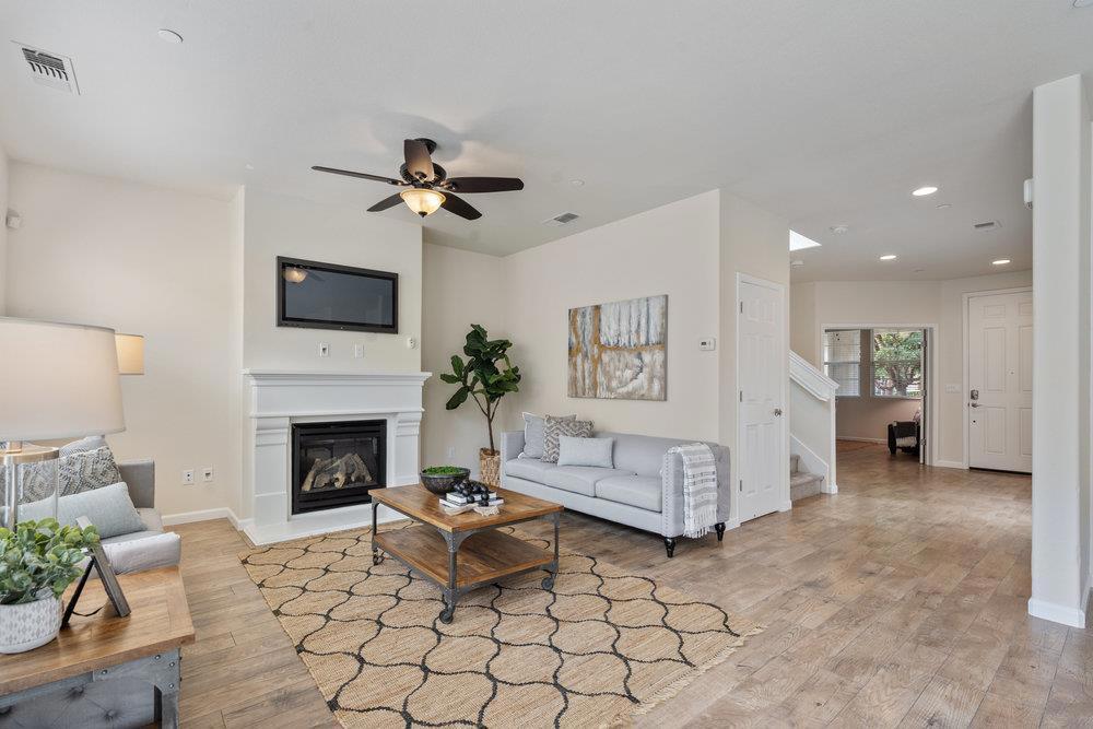 Welcome to 130 Lusitano Way, a captivating home nestled at the end of a serene cul-de-sac in Gilroy, CA. This modern 4-bedroom, 2.5-bathroom residence offers over 2,269 square feet of living space, sitting gracefully on a 5,043 square-foot lot. Upon entering, you'll be greeted by a vibrant atmosphere, enhanced by recessed lighting and the welcoming warmth of a fireplace, perfect for cozy gatherings. The open floor plan flows seamlessly, leading to a spacious den/office that holds the potential to transform into a fifth bedroom. The modern kitchen, equipped with state-of-the-art appliances, serves as a culinary haven for the aspiring chef. Upstairs, discover a bonus room ideal for a family or TV room, offering a versatile space for relaxation and entertainment. Comfort is key in this home, with Central AC and an efficient air conditioning system ensuring a pleasant environment year-round. Convenience abounds with a rare two-car garage and additional parking on a two-car driveway with a 240-volt outlet for electric vehicle charging. Step outside to a charming backyard complete with a patio and lawn area, perfect for outdoor enjoyment. The community playground/tot lot adds to the neighborhood's appeal, making it an idyllic setting for leisurely strolls and outdoor fun.