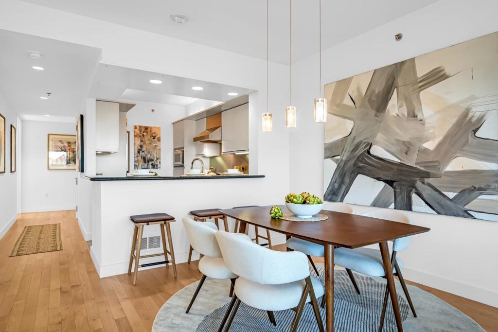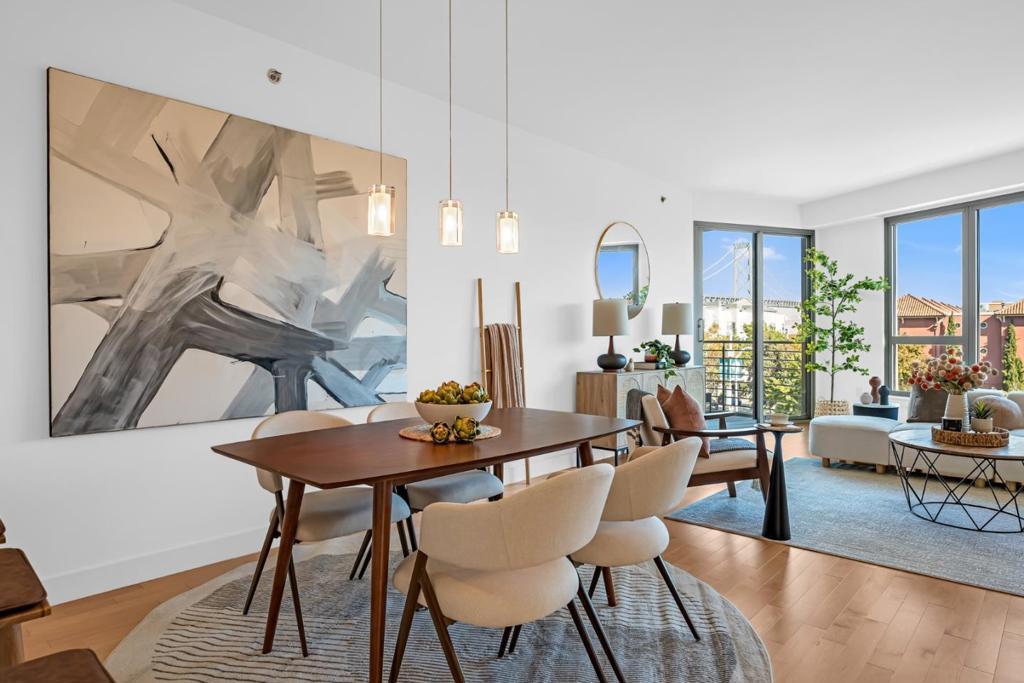 Welcome to The Brannan! This luxurious 3-bedroom, 3-bathroom residence captivates with it's breathtaking Bay Bridge as well as cityscape views. It offers an open and airy layout with refined details throughout giving this residence the perfect feel of home. The kitchen is an entertainer's dream equipped with the finest of Thermador appliances to accomodate those special gatherings. The primary and secondary bedrooms are both thoughtfully designed as en-suites & the third bedroom can be used as an office space with a custom made desk that fits the room perfectly for those work at home days. With hardwood floors throughout, other highlights include a laundry room with stainless steel sink included, spacious closets, and additional storage. The Brannan is not only known for it's beautiful design but also for the community's amenities which include 24/7 security, a heated outdoor swimming pool, hot tub, a barbecue area, & a full gym with yoga studio included. The Brannan provides the finest of San Francisco living with the views to match.
