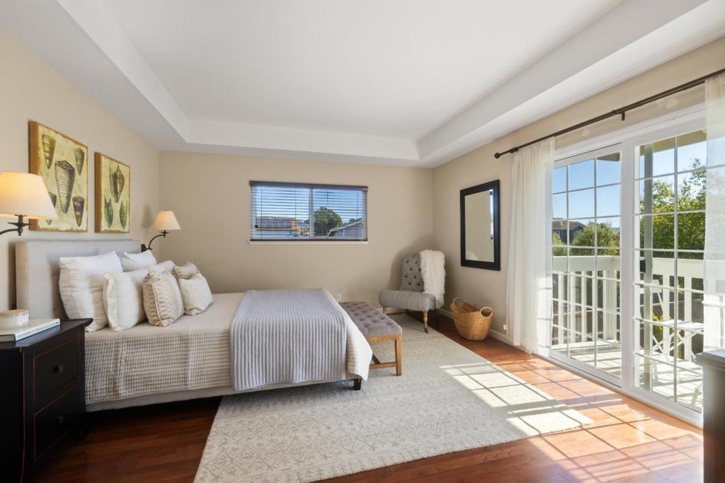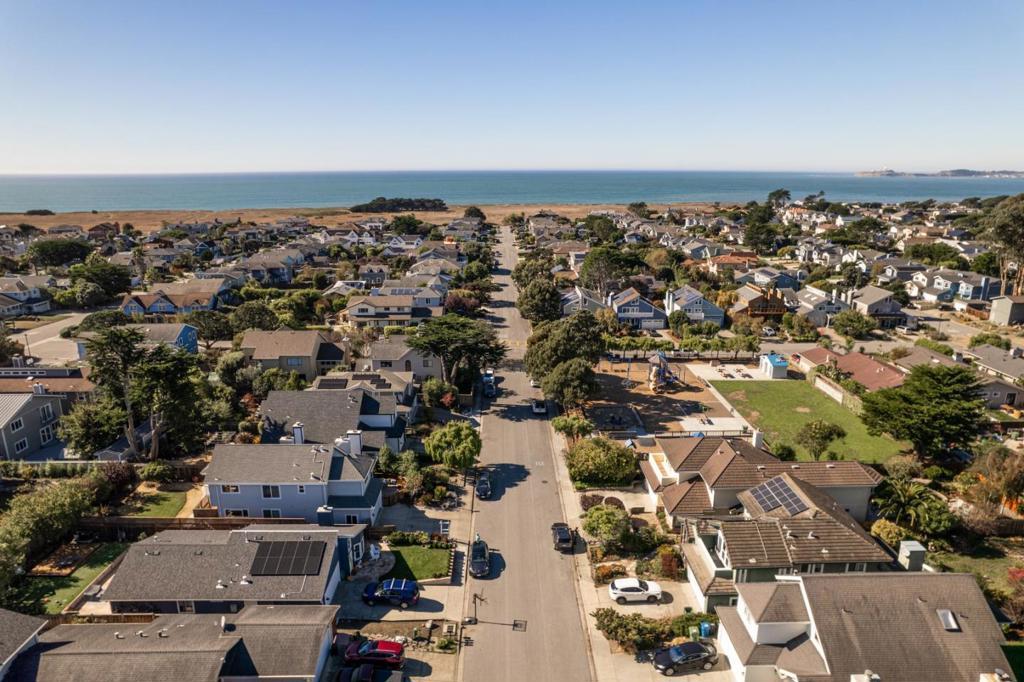 Upon entry, you're greeted by vaulted ceilings and gleaming hardwood floors that lead you into a large kitchen equipped with stainless steel appliances. The open floor plan provides ample space for entertaining or simply enjoying day-to-day life. Skylights throughout the home bring in abundant natural light, creating a warm and inviting atmosphere. For added comfort during those cooler months, two fireplaces are strategically placed within the home. The primary suite is located on the back of the home and features a large walk-in closet. One of the bedrooms and one bathroom are conveniently located on the main level, providing easy access without stairs. The property sits on a generous 5,600+ sf lot adorned with lush landscaping that creates a serene outdoor oasis. Enjoy the luxury of an outdoor shower or unwind on any of the decks, patios, or balconies scattered around this beautiful property. Living here places you west of Highway 1 offering convenient access to downtown Half Moon Bay's unique shops, restaurants, and amenities. The ocean is also centrally located to this residence allowing for plenty of opportunities to enjoy beachside activities at your leisure. For those who enjoy green spaces, there's a park just across the street from this residence.